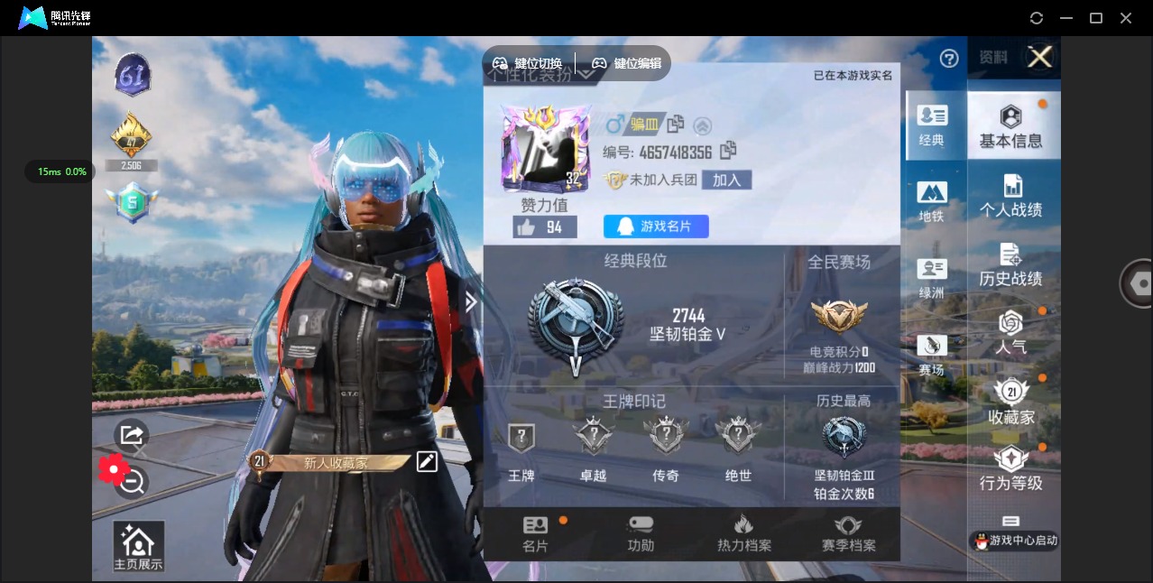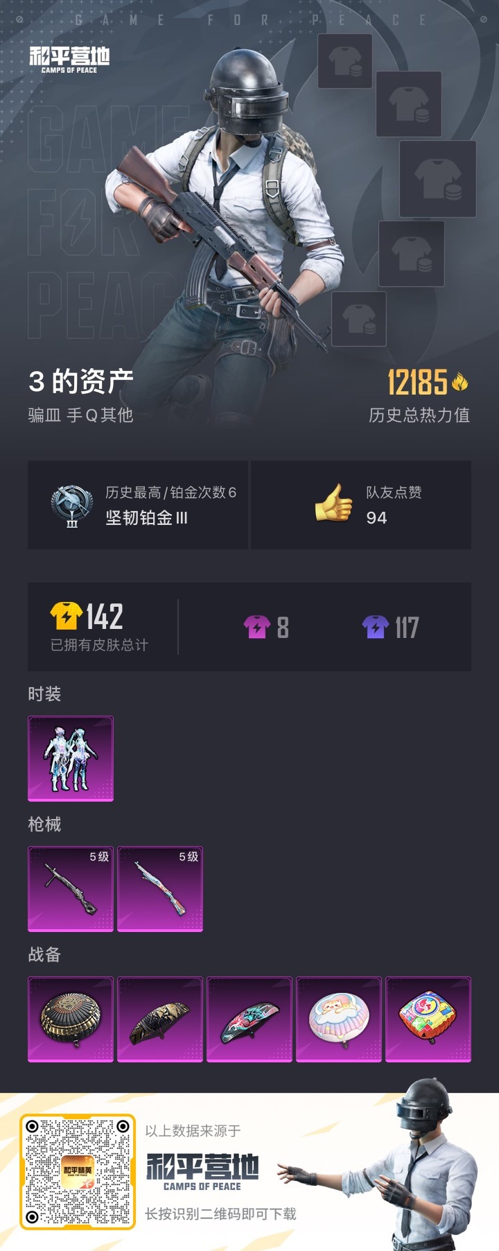 - [11523298]总资产:234 1干员外观 8传说枪械 可二次 可修改实名 烽火地带段位:铂金 全面战场段位:军士长 哈夫币:176 传说武器皮肤:AK-12突击步枪-夜鹰,SMG45冲锋枪-骑士,UZI冲锋枪-特斯拉线圈,SR-3M紧凑突击步枪-特斯拉线圈,AK-12突击步枪-特斯拉线圈,CAR-15突击步枪-阿米娅,725双管霰弹枪-送葬人-无题密令,勇士冲锋枪-能天使-午夜邮差 干员外观:露娜-黑·天际线