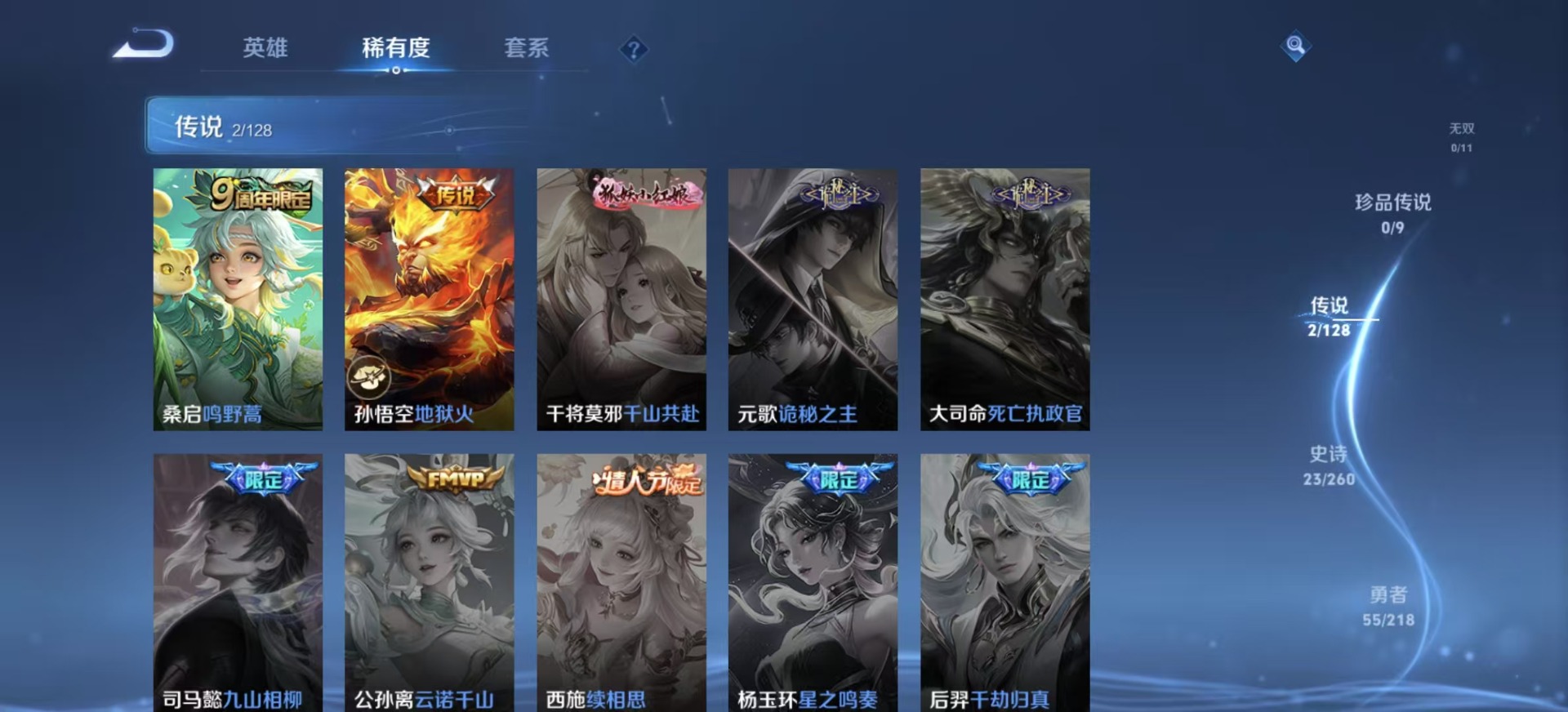 - [12088385]V8 1典藏 4珍品传说 18传说 123英雄 211皮肤 可修改实名 女号 优质装备:九霄神辉(木兰典藏),怪盗基德,酷洛米之心,大耳狗之梦,黄金射手座,冠军飞将,炽阳神光,仲夏夜之梦(大飞蛾),游龙清影(小青龙),无双飞将,妄想实况,霜月吟 珍品传说:时之奇旅-孙策 传说皮:续相思,幻光神枪 珍宝阁皮:蔷薇恋人 限定皮:愿照·九州拓(澜年限),愿照·福禄聚(蔡文姬年限),愿照·岁时盈(虞姬年限),愿照·山河定(司空震年限),愿照·众生和(妲己年限),愿照·千秋盛(女娲年限),鸣野蒿,高山流水 史诗皮:鸭鸭历险记-刘禅,绮世丹青,化蝶舞,龙之律动,百相守梦-周瑜,茶境仙,破空之剑,蒙犽顽岩魄,怒海争锋,蔬乡物语(鲁班七号),琥珀纪元伽罗,百相守梦-百里守约,百相守梦-黄忠,遇见神鹿,紫霞仙子,永昼,江河有灵,雪夜绮愿(周瑜),偶像歌手,无限星赏官,末日机甲-吕布,猫狗日记-孙策,时之恋人-孙尚香,节奏热浪,摇滚巨星,水果甜心,天才门将,心灵骇客,暗隐猎兽者,幽灵船长,鬼剑武藏,舞动绿茵,缤纷独角兽,乘风破浪,逐浪之夏,水晶猎龙者,箭羽风息,金属风暴,圣诞狂欢,圣诞恋歌,鹰眼统帅,魅力维加斯,未来纪元-赵云
