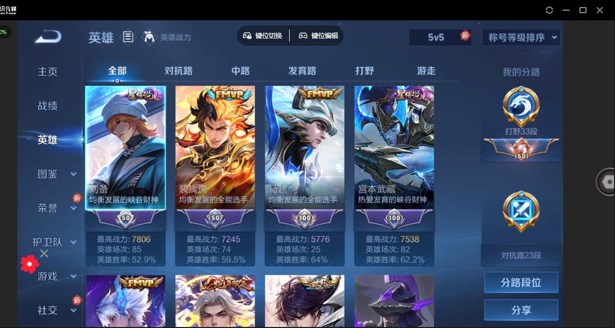 - [11868170]V5 3传说 121英雄 134皮肤 可修改实名 优质装备:黄金射手座,地狱火 珍宝阁皮:玩趣恶龙 限定皮:鸣野蒿,五谷丰年 史诗皮:化蝶舞,龙之律动,破空之剑,特工魅影,百解令(蒙犽),末日机甲-吕布,乱世虎臣,女仆咖啡,摇滚巨星,水果甜心,绅士熊喵,天才门将,心灵骇客,鬼剑武藏,水晶猎龙者,鹰眼统帅,魅力维加斯,未来纪元-赵云
