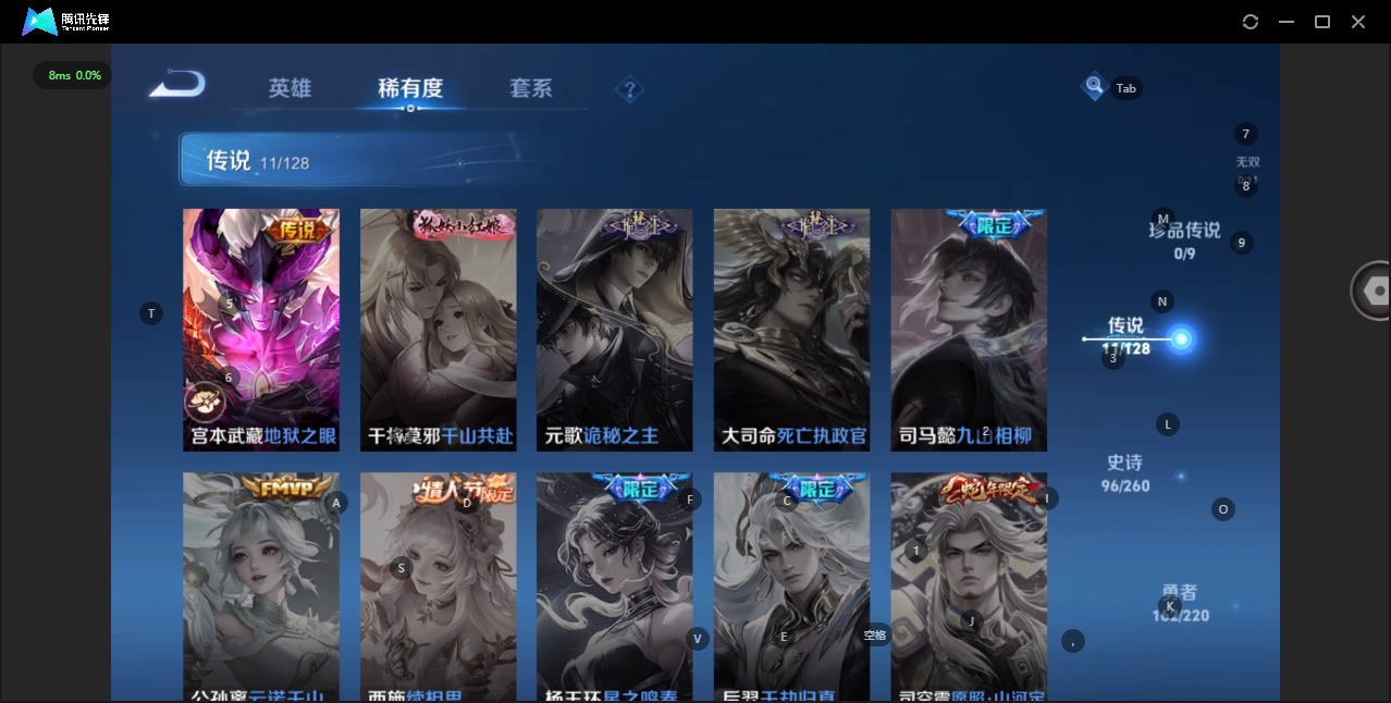 - [11516818]V7 1珍品传说 7传说 125英雄 218皮肤 可修改实名 珍品传说:朽木白哉 传说皮:黄金狮子座,末日机甲-孙尚香(绿蚂蚱),一念神魔,云鹰飞将(小将军) 珍宝阁皮:胡桃夹子,优雅恋人 限定皮:愿照·九州拓(澜年限),鸣野蒿,至尊宝,白晶晶,时雨天司(水龙头),高山流水,冰锋战神,李小龙,朱雀志(守约年限),大圣娶亲 史诗皮:茶境仙,龙之律动,石田雨龙,化蝶舞,紫霞仙子,苍穹之光,黄金分割率,千年之狐,猫狗日记-孙策,节奏热浪,修罗,摇滚巨星,水果甜心,天才门将,星夜王子,心灵骇客,德古拉伯爵,暗隐猎兽者,幽灵船长,鬼剑武藏,心灵战警,纤云弄巧,繁星吟游(呼啦呼啦),缤纷独角兽,乘风破浪,逐浪之夏,水晶猎龙者,曙光守护者,热力回旋,金属风暴,圣诞狂欢,圣诞恋歌,鹰眼统帅,魅力维加斯