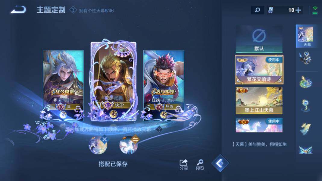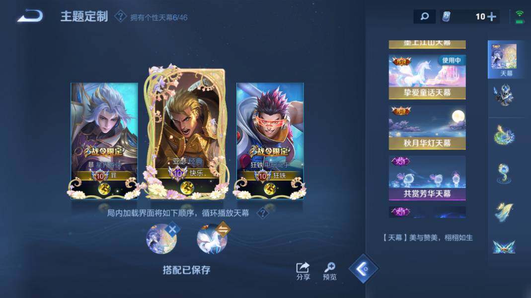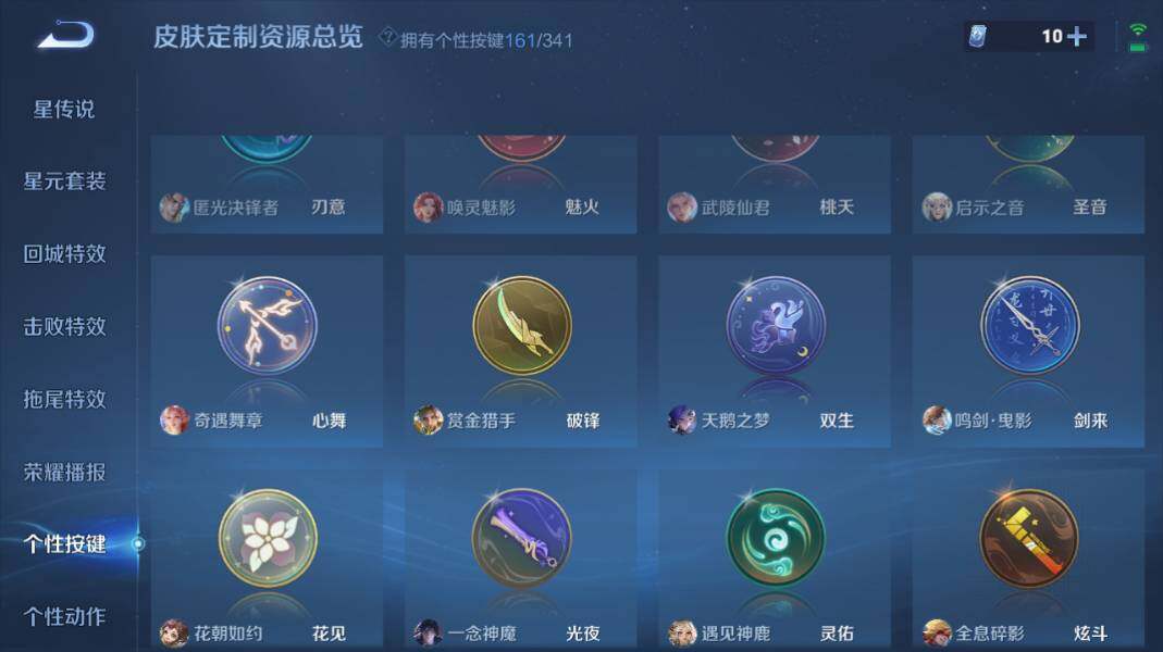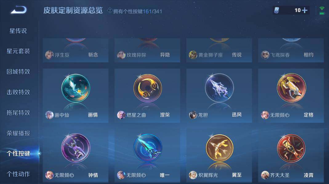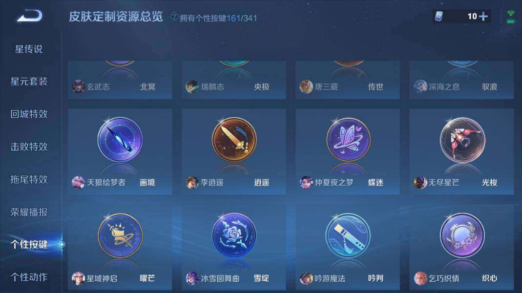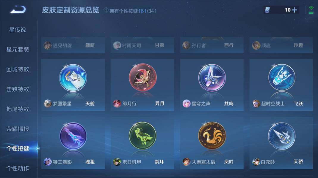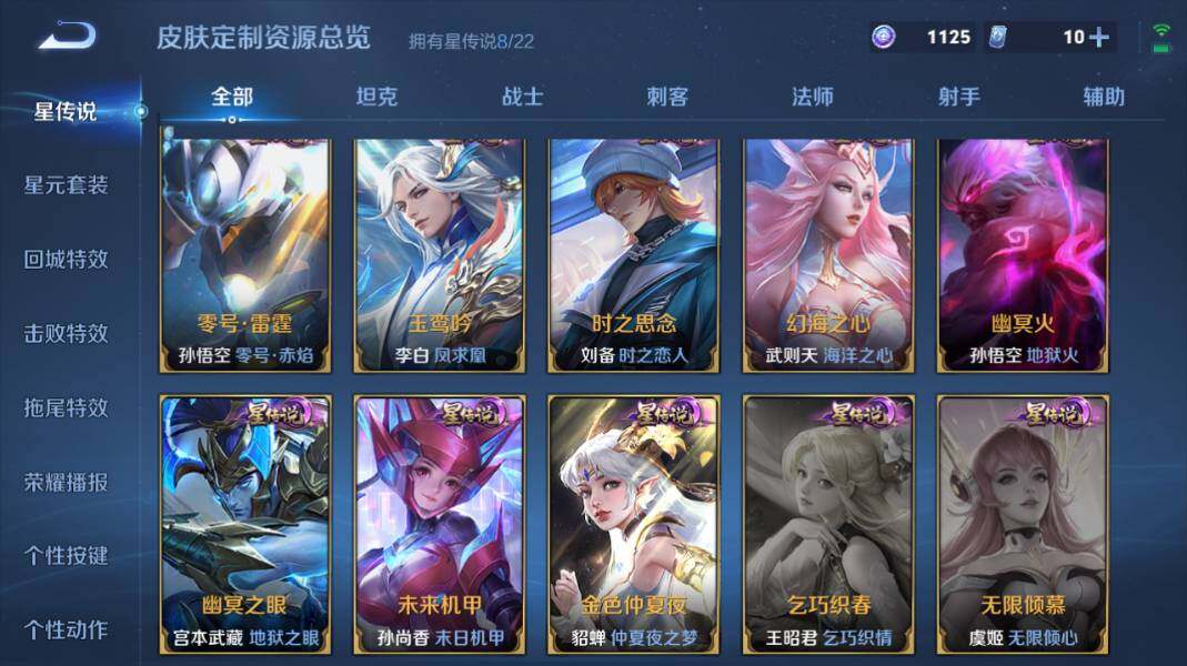 武则天女帝,小乔天鹅之梦,鲁班七号星空梦想,武则天倪克斯神谕,夏侯惇无限飓风号,芈月大秦宣太后,李白鸣剑·曳影,孙悟空全息碎影,诸葛亮星域神启,花木兰九霄神辉,铠银白咏叹调,貂蝉幻阙歌,韩信弑枪猎影,虞姬神鉴启示录,瑶拾光映像,伽罗最初的交响
