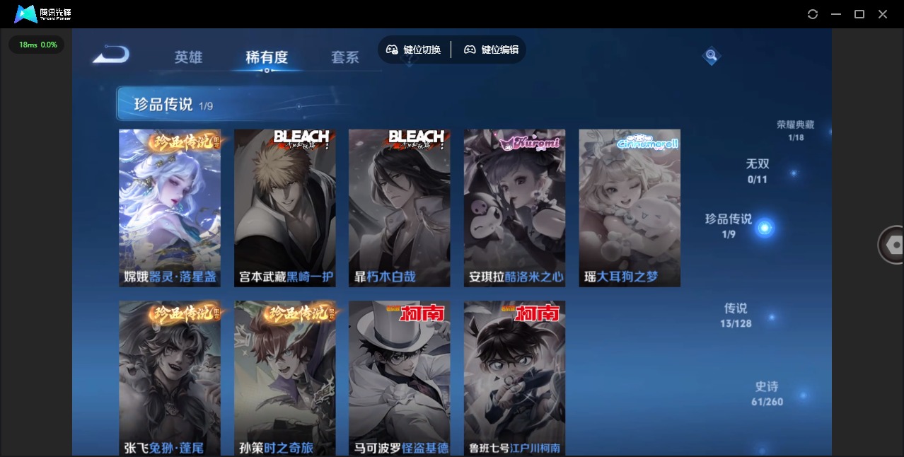 - PX_2111782-Q/至尊星耀/39皮肤/67英雄/0典藏/0珍品无双/0无双/2珍品传说/4传说/10史诗/1稀有英雄 【2 珍品传说】怪盗基德 马可波罗,江户川柯南 鲁班七号, 【4 传说皮肤】画中仙 干将莫邪,愿照·九州拓 澜,幻光神枪 云缨,鸣野蒿 桑启, 【10 史诗皮肤】末日机甲 吕布,鬼剑武藏 宫本武藏,魅力维加斯 妲己,特工魅影 百里守约,龙之律动 狂铁,皇家上将 赵云,冰冠公