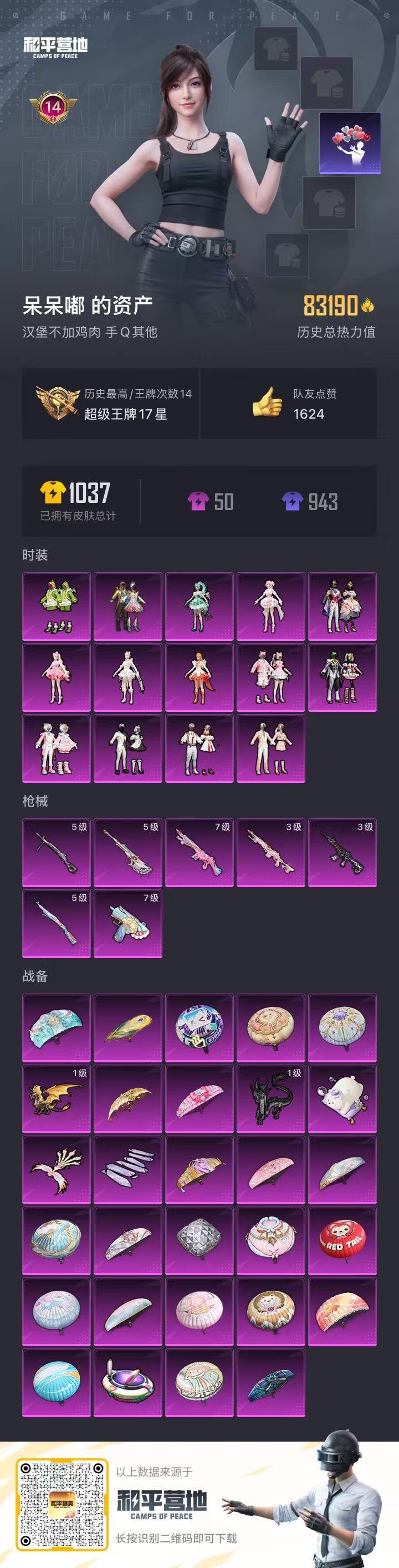 - PX_2091007- 可二次 苹果手Q-14王牌印记-9粉装-7特效枪-0载具-66780热力值-143套装-197枪皮-3卓越印记-0传奇印记, 【9粉装】,宝贝奶油派,天使彩虹糖,紫电风暴,寒光使者,莲影清波,蜜桃特工,金丰海韵,创世·救赎,引力星, 【7特效枪】,AKM-炫紫旋律-7级,SCAR-L-锦绣绵绵-5级,M416-心之恋语-7级,M416-风花雪月-1级,Kar98K-巳巳如意