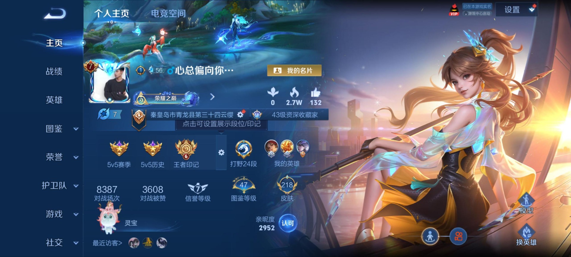 - PX_2095935-实名: 可修改 贵族等级: V5 英雄数: 124 皮肤数: 163 传说皮: 乘龙·问璇玑 限定皮: 李小龙,梁祝,御风骁将,引擎之心,飞衡,大圣娶亲,五谷丰年,山海·玄木吟,鸣野蒿,逐霄战戟