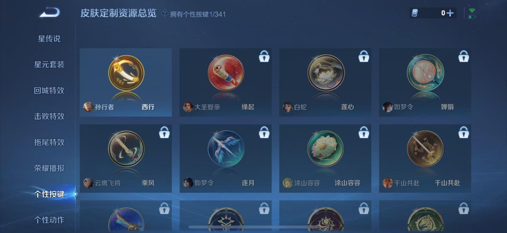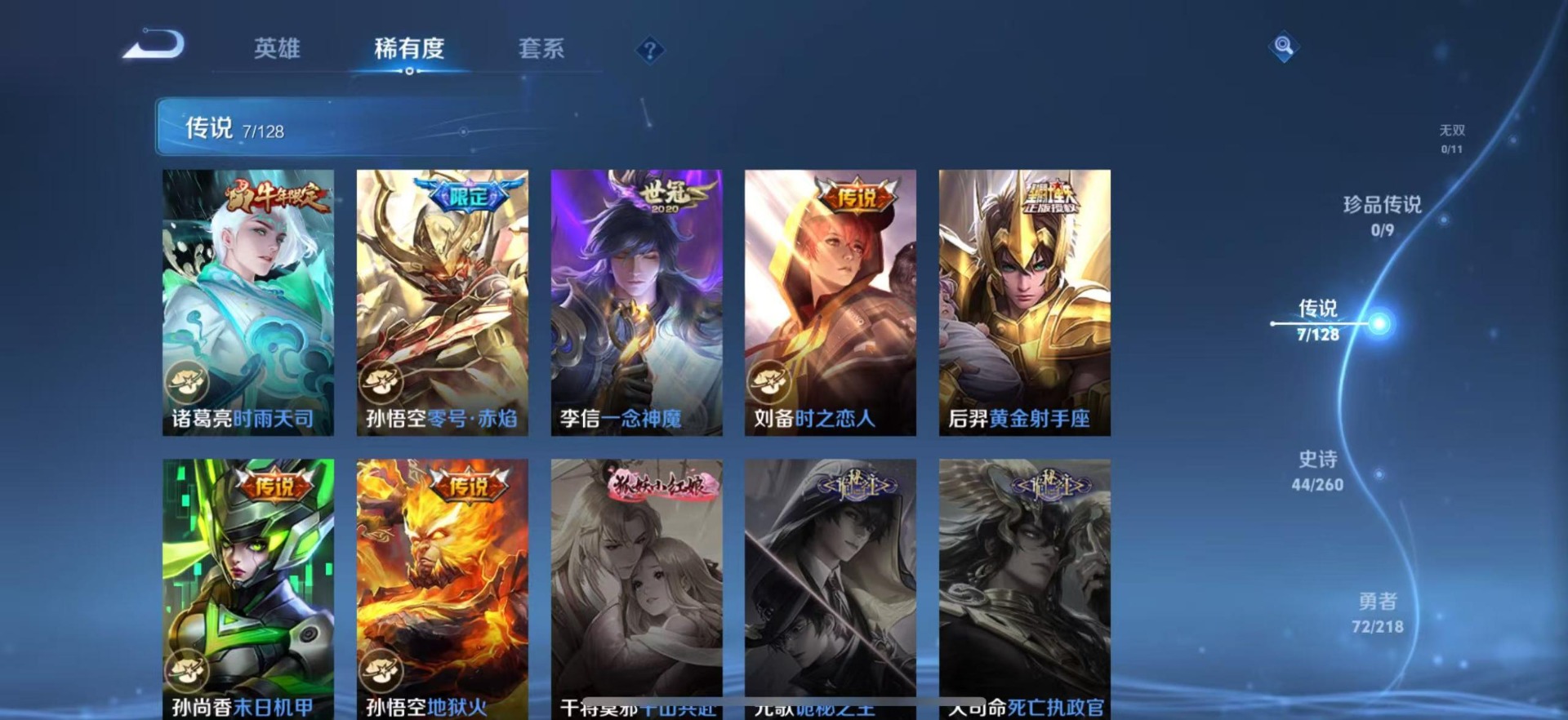 黄忠烈魂,赵云龙胆,典韦岱宗,项羽霸王别姬,吕布御风骁将,诸葛亮时雨天司,裴擒虎李小龙,上官婉儿梁祝,猪八戒猪悟能,孙悟空孙行者,孙悟空大圣娶亲,芈月白晶晶,孙悟空至尊宝