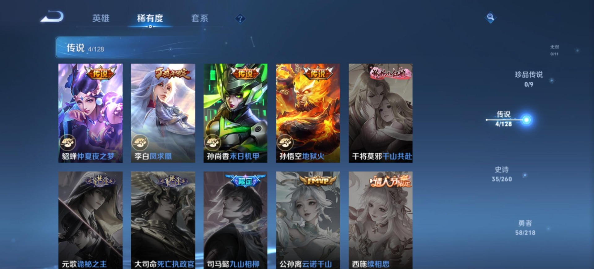- [11297345]V6 1典藏 118英雄 118皮肤 可修改实名 优质装备:拾光映像(瑶典藏) 限定皮:五谷丰年 史诗皮:鸭鸭历险记-刘禅,苍鳞隐世,狼魂孤将,绮世丹青,化蝶舞,龙之律动,小牛鸭,百相守梦-周瑜,茶境仙,幻珠鲛人,埋骨钱,百相守梦-百里守约,紫霞仙子,千年之狐,高渐离燃音魔法,偶像歌手,末日机甲-吕布,猫狗日记-孙策,乱世虎臣,水果甜心,天才门将,鬼剑武藏,心灵战警,天秀·启明,舞动绿茵,纤云弄巧,繁星吟游(呼啦呼啦),拒霜思,缤纷独角兽,逐浪之夏,曙光守护者,鹰眼统帅,魅力维加斯,未来纪元-赵云