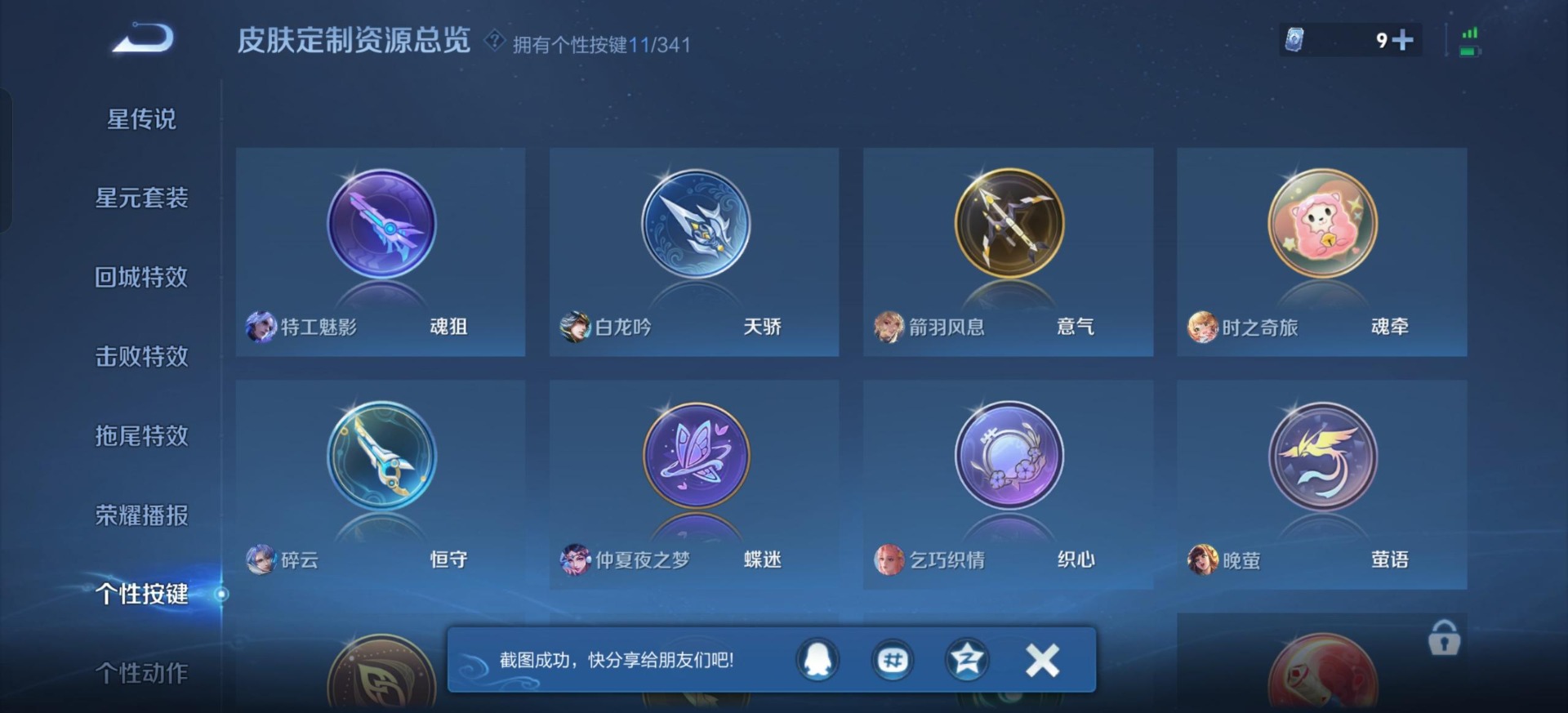 马超无双飞将,貂蝉猫影幻舞,王昭君乞巧织情,百里守约碎云,李元芳飞鸢探春,镜炽阳神光,西施游龙清影,赵云淬星耀世,曜云鹰飞将,李信一念神魔