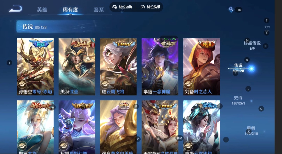- [11630444]V7 8传说 123英雄 157皮肤 可修改实名 优质装备:炽阳神光,一念神魔,无双飞将,霜月吟,涂山容容 传说皮:铠冥王哈迪斯,幻光神枪 珍宝阁皮:蔷薇恋人,玩趣恶龙 限定皮:逐霄战戟,鸣野蒿,飞衡(韩信年限),五谷丰年,青龙志(铠年限),孙行者,猪悟能,启示之音 史诗皮:星界战将,龙之律动,芈月浮光幕影,星界特工,紫霞仙子,特工魅影,千年之狐,江河有灵,冰冠公主,电玩·爆裂旋风,猫狗日记-孙策,乱世虎臣,节奏热浪,水果甜心,绅士熊喵,天才门将,星夜王子,功夫厨神,暗隐猎兽者,鬼剑武藏,心灵战警,舞动绿茵,地狱岩魂,纤云弄巧,乘风破浪,逐浪之夏,水晶猎龙者,曙光守护者,金属风暴,原初追逐者,圣诞狂欢,鹰眼统帅,魅力维加斯,无心,未来纪元-赵云