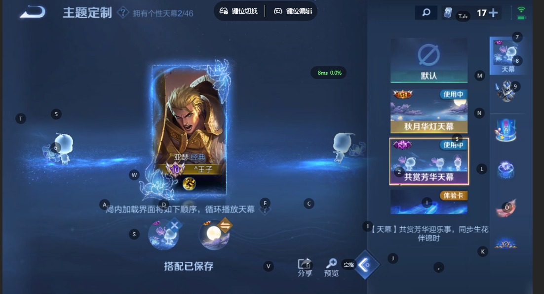 夏侯惇无限飓风号,小乔天鹅之梦,孙尚香杀手不太冷,诸葛亮星域神启,花木兰九霄神辉,孙悟空全息碎影,铠银白咏叹调,伽罗最初的交响,鲁班七号星空梦想,李白鸣剑·曳影,瑶拾光映像