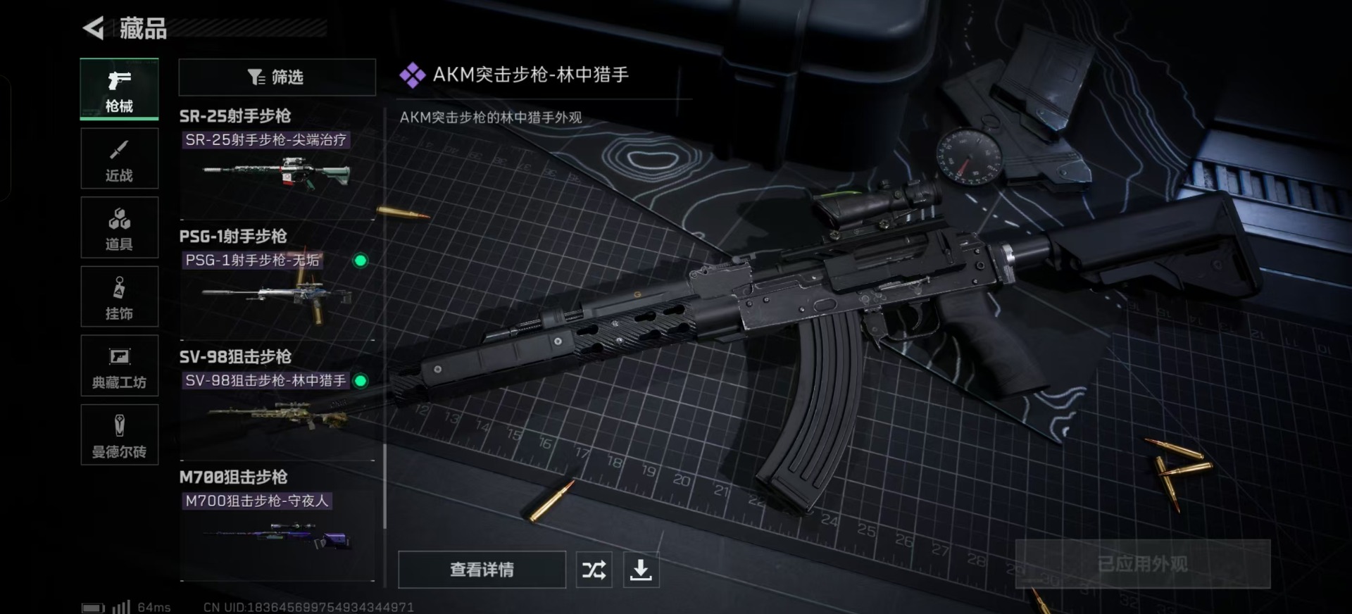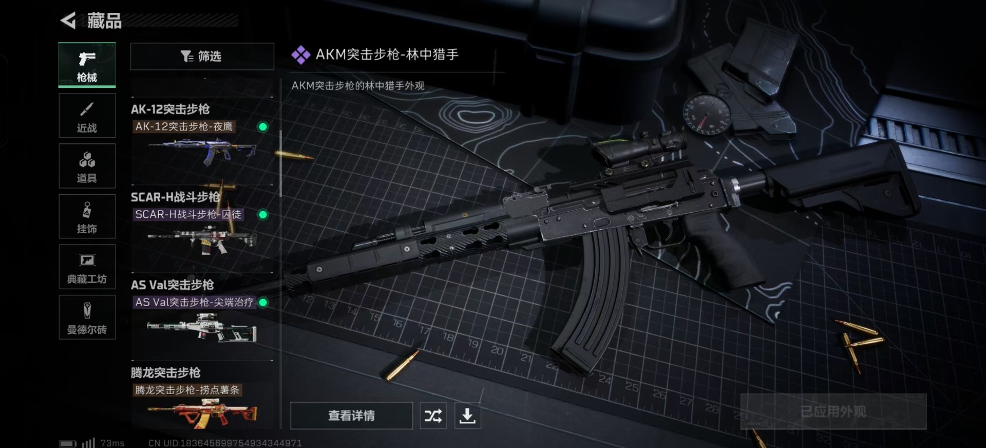 - [11625585]总资产:70.1M 哈夫币:2.452K 可二次 可修改实名 烽火地带段位:无段位 全面战场段位:无段位 史诗武器皮肤:AKM突击步枪-林中猎手,M1014霰弹枪-林中猎手