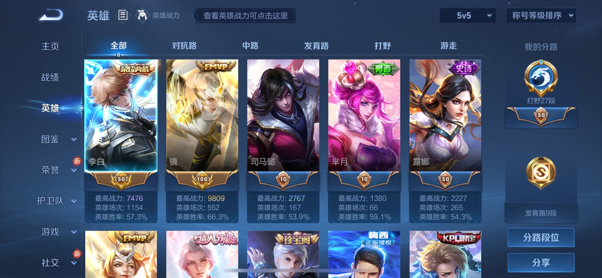 - [11252419]V6 1典藏 1珍品传说 6传说 105英雄 66皮肤 可修改实名 优质装备:九霄神辉(木兰典藏),怪盗基德,久胜战神,炽阳神光,花朝如约(花篮子) 限定皮:愿照·九州拓(澜年限),愿照·山河定(司空震年限),鸣野蒿 史诗皮:石田雨龙,破空之剑,蒙犽顽岩魄,百相守梦-黄忠,黄金分割率,偶像歌手,白蛇,冰冠公主,末日机甲-吕布,节奏热浪,水果甜心,德古拉伯爵,鬼剑武藏,缤纷独角兽,逐浪之夏,水晶猎龙者,曙光守护者,原初追逐者,鹰眼统帅,未来纪元-赵云