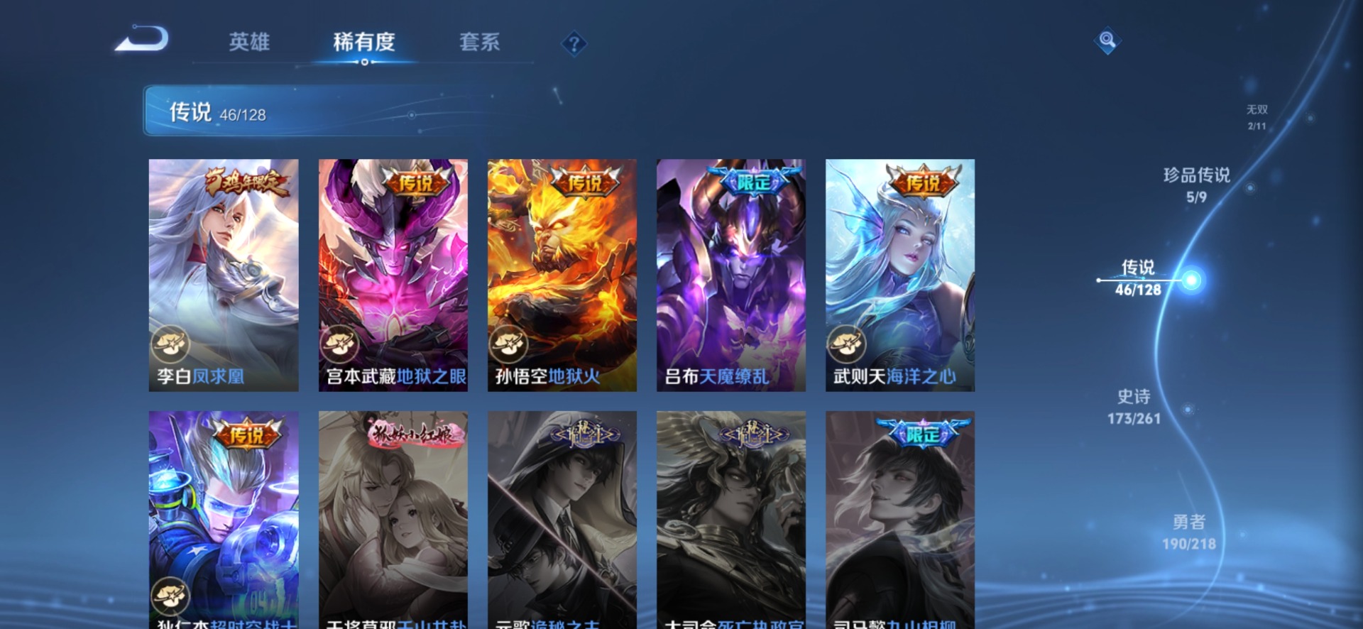 - PX_2089264- 可二次 V7 贵族积分32507 安卓QQ/ 188皮肤/ 122英雄 【2 星传说皮肤】,幽冥火 孙悟空,幽冥之眼 宫本武藏, 【2 珍品传说】,酷洛米之心 安琪拉,兔狲·蓬尾 张飞, 【8 传说皮肤】,云霓雀翎 虞姬,碎云 百里守约,地狱火 孙悟空,仲夏夜之梦 貂蝉,地狱之眼 宫本武藏,黄金狮子座 达摩,久胜战神 干将莫邪,愿照·岁时盈 虞姬, 【52 史诗皮肤】,高