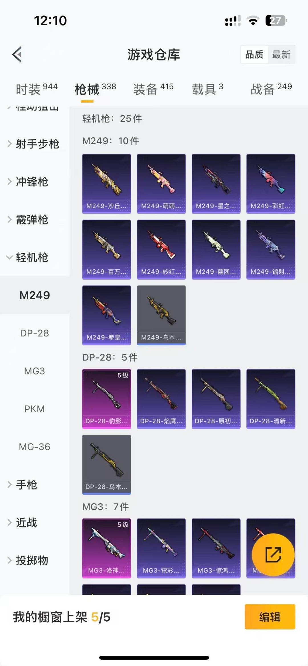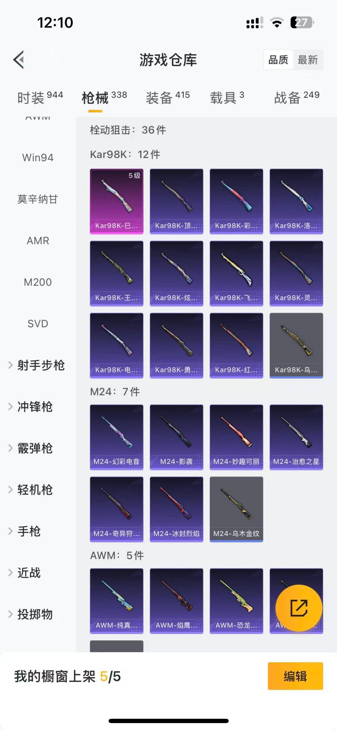 - [11297831]总资产:147.7 2干员外观 3传说枪械 高级安全箱(9.17到期) 可二次 可修改实名 烽火地带段位:铂金 全面战场段位:无段位 哈夫币:4.251 传说武器皮肤:复合弓-黑-天际线,CAR-15突击步枪-阿米娅,725双管霰弹枪-送葬人-无题密令 史诗武器皮肤:PKM通用机枪-荒野求生,勇士冲锋枪-深海恐惧,AKM突击步枪-林中猎手,M16A4突击步枪-竞赛选手,SVD狙击步枪-荒野求生,M1014霰弹枪-林中猎手,PTR-32突击步枪-英雄,PSG-1射手步枪-无垢,M250通用机枪-囚徒,SV-98狙击步枪-囚徒,SCAR-H战斗步枪-囚徒,腾龙突击步枪-无垢,MP7冲锋枪-无垢 干员外观:蜂医-送葬人·无题密令(S5),露娜-黑·天际线