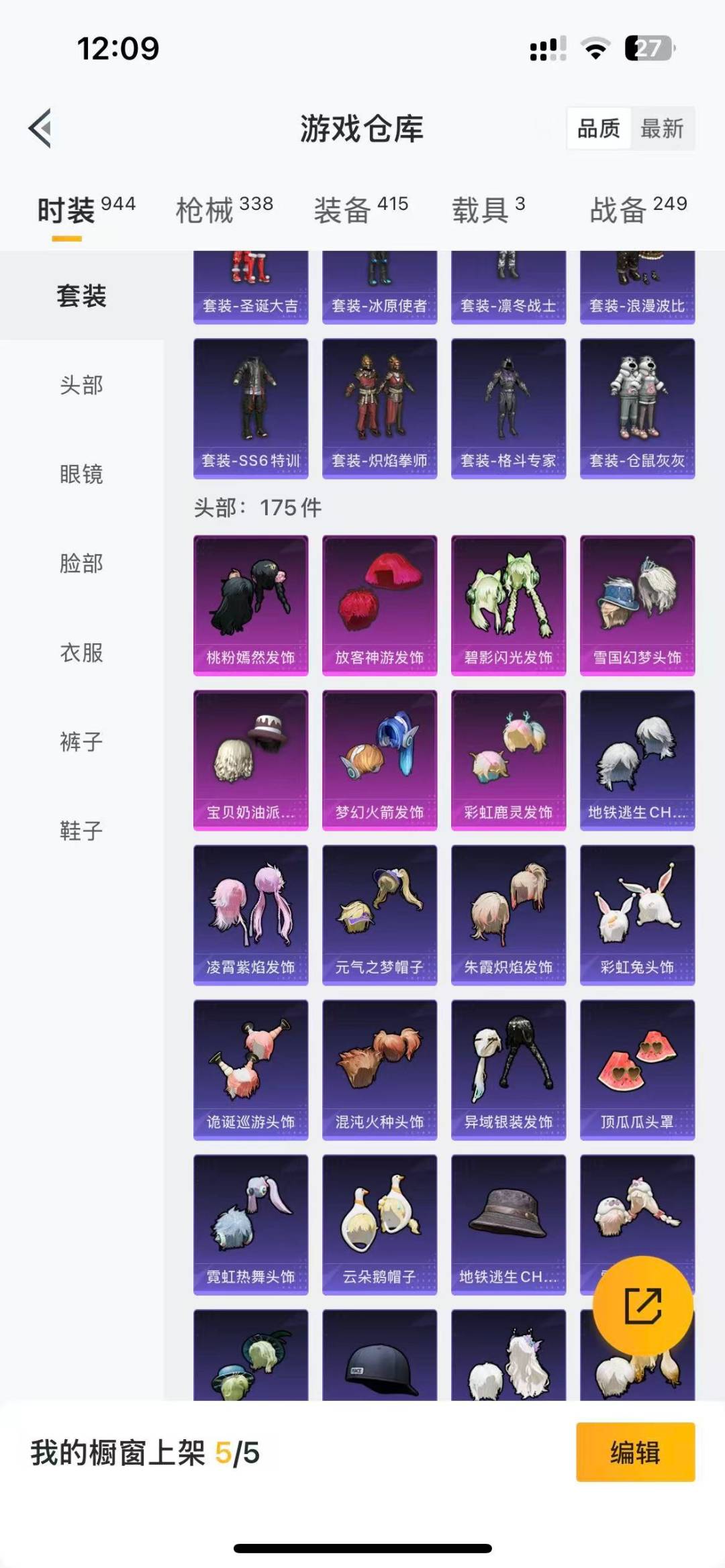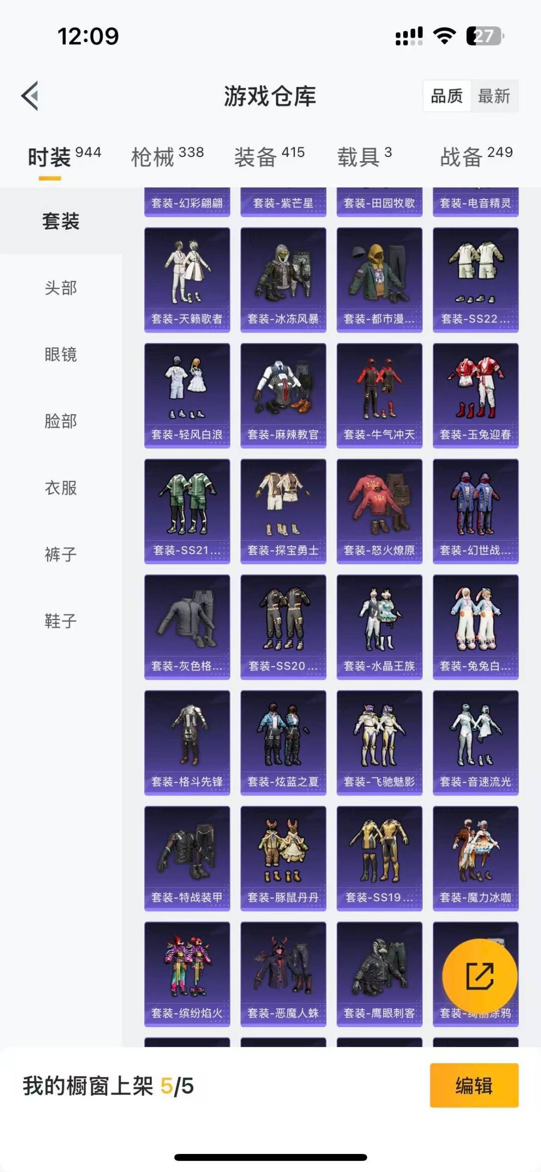 [11818321]1红装 12粉装 12特效枪 3载具 28印记 可二次 可修改实名 身法装备:舞王派对(派对舞王、小金鞋),零号机款机体服(黄螳螂),巡查衣(绝对防御上衣),萌熊伴侣背包(粉熊背包) 优质装备:沙丘之主-图卡盟(黄金木乃伊),三级沙丘之主-图卡盟(3级黄金木乃伊),雪国幻梦(冰雪女王),虚妄之影(炫耀紫),零号机款机体服(黄螳螂),玛莎拉蒂Ghibli(粉),合金龙骨(蓝),巡查员衣服(绝对防御上衣),九级SCAR-L-天蓬元帅(满级天蓬元帅SCAR-L),巡查衣(绝对防御上衣),舞王派对(派对舞王、小金鞋),萌熊伴侣背包(粉熊背包),MG3洛神天依,AKM炫紫旋律,M416心之恋语,梦幻火箭(新101)(新火箭少女101粉色套装),极限特训,宝贝奶油派,放客神游,俏皮狐尾,洛天依,GROZA焦糖拿铁,UMP45启明星,SCAR-L天蓬元帅,P90沙丘之主,七级GROZA-焦糖拿铁,七级M416-心之恋语,七级AKM-炫紫旋律,M416墨龙九天,破片手榴弹秋玉花灯,七级破片手榴弹秋玉花灯,桃粉嫣然,AUG-圣斗士星矢,七级AUG-圣斗士星矢,羊梦糖心,Kar98K-巳巳如意 热门装扮:彩虹鹿灵,碧影闪光,兔兔白日梦,神秘黑猫,软萌银虎,胖达圆圆,激萌罗小黑,潮萌小黄鸭,仓鼠灰灰,鹰眼刺客,浪漫波比,派对舞王(小金鞋) 载具:空客H135-蔚蓝之翼 稀有枪皮:DP-28-豹影疾电 六级特效枪:六级UMP45-启明星 五级特效枪:五级Kar98K-巳巳如意,五级DP-28-豹影疾电,五级MG3-洛神天依 三级特效枪:三级M416-墨龙九天,三级P90-沙丘之主 紫色装扮:田园牧歌,轻风白浪,SS22特训,SS23特训,幻彩翩翩,灵蜜圈圈,妙红点点,SS21特训,紫芒星,SS31特训套装,SS2特训,SS3特训,SS5特训,人气偶像,冰原使者,,冰川特警,凛冬战士,北国孤狼,霓虹热舞,旭日情侣,SS30特训套装,云朵鹅,彩虹兔,雪绒豹,SS33特训套装,顶瓜瓜,诡诞巡游,混沌火种,SS20特训,青春冒险家,潮流游乐家,SS15特训,时空追击者,暴风机械师,SS16特训,爆裂葡萄,银白舞王,SS13特训,治愈之星,迅捷之星,科技之星,SS14特训,怪笑疯兔,萌趣颜团子,特种颜团子,灵绣,飞驰魅影,音速流光,SS19特训,军刀雅典娜,豚鼠丹丹,吉莉礼服,电音精灵,天籁歌