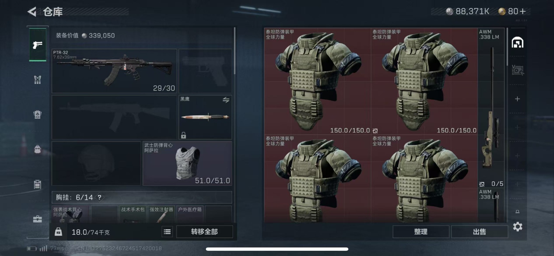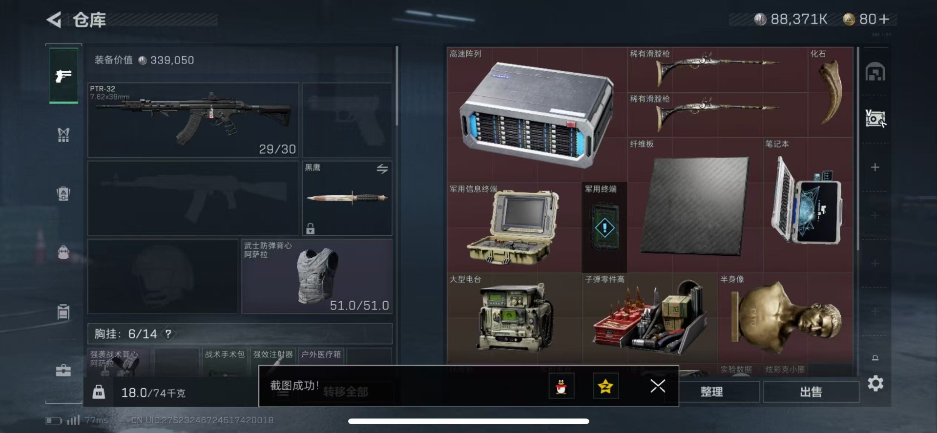 [11818331]总资产:133.4M 9传说枪械 哈夫币:88.371K 进阶安全箱(2×2)9.15号到期 可二次 可修改实名 烽火地带段位:黑鹰 全面战场段位:无段位 传说武器皮肤:Vector冲锋枪-狩猎时刻,G3战斗步枪-狩猎时刻,M16A4突击步枪-狩猎时刻,AK-12突击步枪-特斯拉线圈,CAR-15突击步枪-阿米娅,SR-3M紧凑突击步枪-特斯拉线圈,UZI冲锋枪-特斯拉线圈,勇士冲锋枪-能天使-午夜邮差,复合弓-黑-天际线