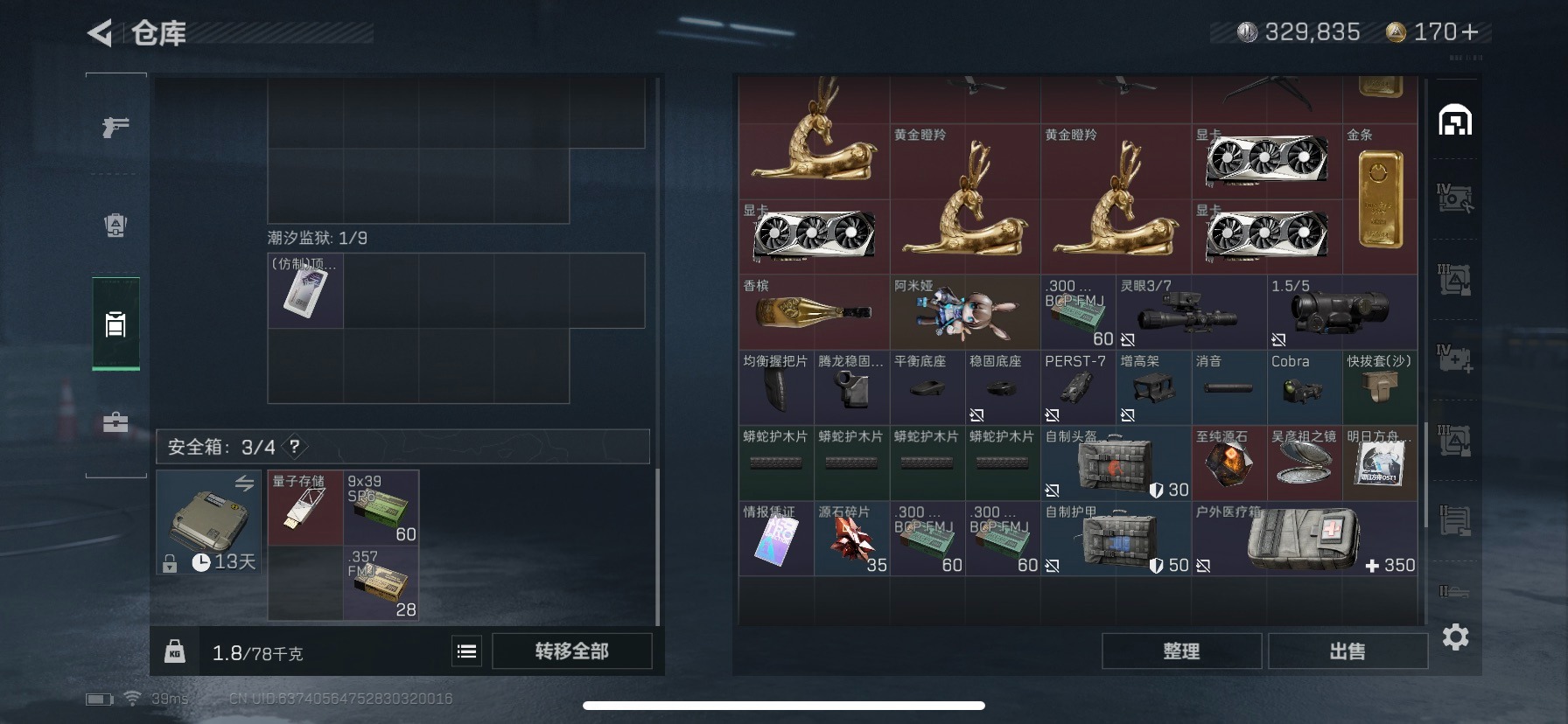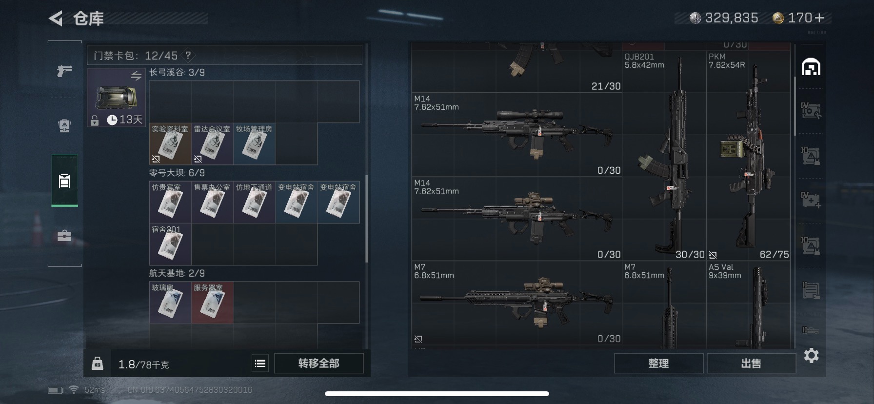 - [11632579]总资产:298.6 2干员外观 4传说枪械 高级安全箱(2×3)9.15号到期 可二次 可修改实名 烽火地带段位:黄金 全面战场段位:尉官 哈夫币:131 传说武器皮肤:复合弓-黑-天际线,CAR-15突击步枪-阿米娅,725双管霰弹枪-送葬人-无题密令,M4A1突击步枪-蚀金玫瑰 史诗武器皮肤:Vector冲锋枪-潜袭者,M1014霰弹枪-潜袭者,PKM通用机枪-荒野求生,SR-3M紧凑突击步枪-荒野求生,SVD狙击步枪-荒野求生,SV-98狙击步枪-林中猎手,PSG-1射手步枪-无垢,AS Val突击步枪-典狱官,SV-98狙击步枪-囚徒,腾龙突击步枪-无垢,MP7冲锋枪-无垢 干员外观:红狼-蚀金玫瑰,露娜-黑·天际线