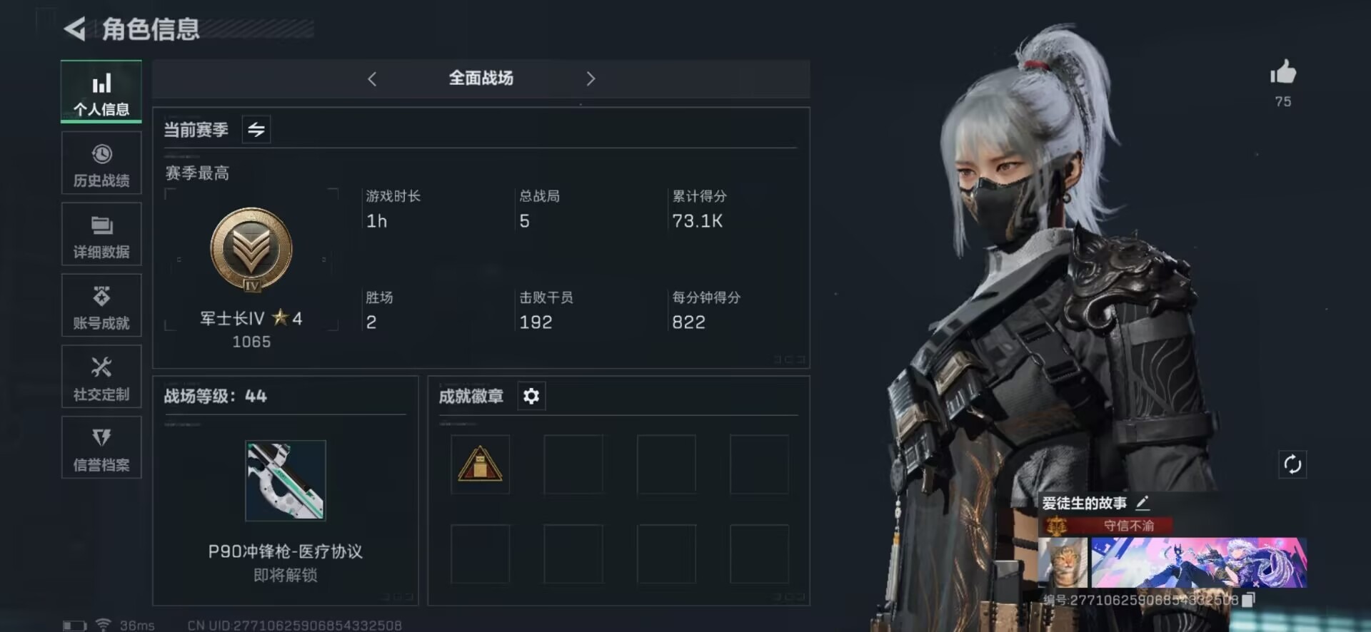 - [11528903]总资产:31.2M 1干员外观 1近战传说 12传说枪械 哈夫币:5.389K 可二次 可修改实名 优质装备:近战-影锋,K416突击步枪-命运(典藏) 烽火地带段位:黄金 全面战场段位:上等兵 传说武器皮肤:SR-25射手步枪-水墨云图,SCAR-H战斗步枪-水墨云图,AWM狙击步枪-影锋,M1014霰弹枪-影锋,AK-12突击步枪-夜鹰,93R-捞点薯条,PSG-1射手步枪-黑-天际线,AWM狙击步枪-捞点薯条,腾龙突击步枪-捞点薯条,勇士冲锋枪-能天使-午夜邮差 史诗武器皮肤:QBZ95-1突击步枪-ACE,AUG突击步枪-特勤执行,SKS射手步枪-ACE,M700狙击步枪-蝮蛇,G3战斗步枪-战场英杰,PKM通用机枪-守夜人,MP5冲锋枪-深海恐惧,AKM突击步枪-林中猎手,MP5冲锋枪-青枳,G3战斗步枪-锡兰,SV-98狙击步枪-林中猎手,QSZ92G-风林火山 干员外观:骇爪-水墨云图