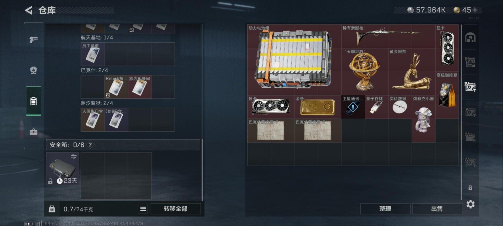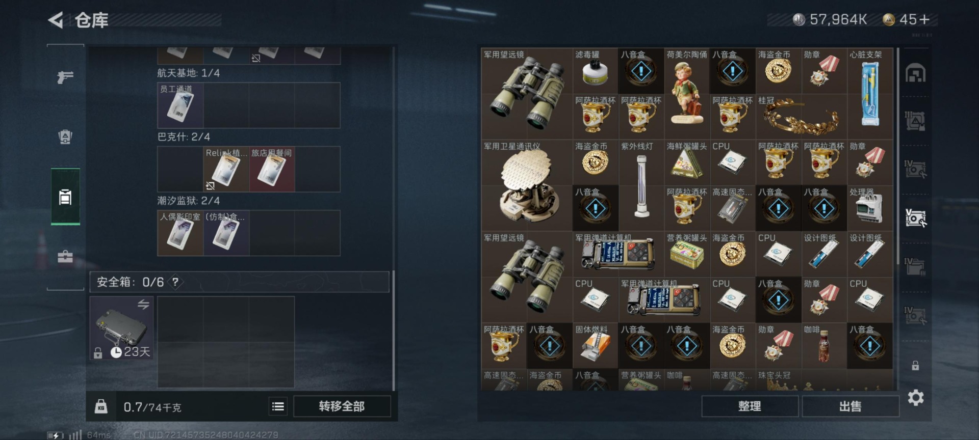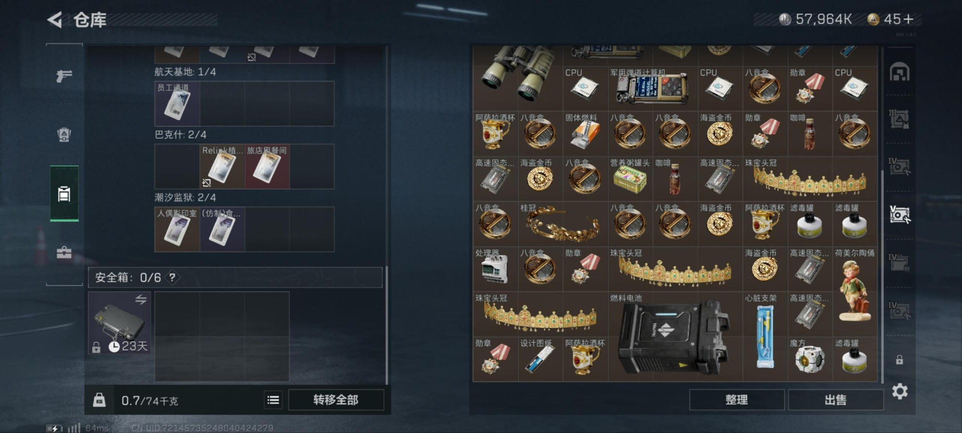 [11818799]总资产:110M 2干员外观 1近战传说 14传说枪械 哈夫币:57.964K 高级安全箱(9.17到期) 可二次 可修改实名 优质装备:近战-北极星 烽火地带段位:铂金 全面战场段位:无段位 传说武器皮肤:AK-12突击步枪-夜鹰,M16A4突击步枪-狩猎时刻,M4A1突击步枪-阿米娅,CAR-15突击步枪-阿米娅,复合弓-黑-天际线,Vector冲锋枪-狩猎时刻,G3战斗步枪-狩猎时刻,AK-12突击步枪-特斯拉线圈,SR-3M紧凑突击步枪-特斯拉线圈,UZI冲锋枪-特斯拉线圈,勇士冲锋枪-能天使-午夜邮差,725双管霰弹枪-送葬人-无题密令,M4A1突击步枪-蚀金玫瑰 史诗武器皮肤:PSG-1射手步枪-原型机(典藏),PKM通用机枪-守夜人,AS Val突击步枪-尖端治疗,M700狙击步枪-守夜人,PKM通用机枪-荒野求生,勇士冲锋枪-深海恐惧,AKM突击步枪-林中猎手,SR-3M紧凑突击步枪-荒野求生,M1014霰弹枪-林中猎手,SV-98狙击步枪-林中猎手,SVD狙击步枪-荒野求生,AS Val突击步枪-典狱官,M250通用机枪-囚徒,SCAR-H战斗步枪-囚徒,MP7冲锋枪-无垢,PSG-1射手步枪-无垢,S12K霰弹枪-曙光 干员外观:红狼-蚀金玫瑰,露娜-黑·天际线