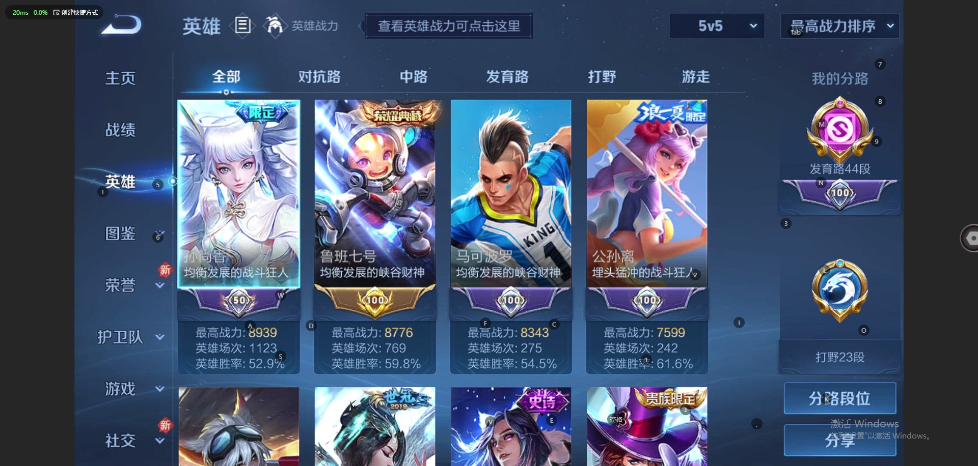 - [12029993]V7 4传说 113英雄 94皮肤 可修改实名 优质装备:云鹰飞将(小将军),一念神魔,末日机甲-孙策 珍宝阁皮:胡桃夹子 限定皮:武陵仙君(小桃花),匿光决锋者,五谷丰年,百木心枪,山海·玄木吟(马可年限) 史诗皮:特工魅影,百解令(蒙犽),末日机甲-吕布,节奏热浪,女仆咖啡,水果甜心,绅士熊喵,星夜王子,功夫厨神,幽灵船长,鬼剑武藏,地狱岩魂,逐浪之夏,曙光守护者,金属风暴,圣诞狂欢,鹰眼统帅,无心,未来纪元-赵云