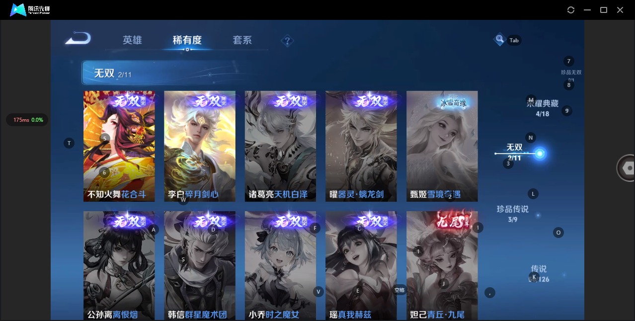 - [11579461]无双贵族 6典藏 1珍品无双 3无双 7珍品传说 66传说 124英雄 418皮肤 可修改实名 连体和平 优质装备:馥梦繁花,无限飓风号(高达),大秦宣太后,鸣剑·曳影,星域神启(倪克斯贼亮),银白咏叹调(倪克斯侍卫),韩信群星魔术团(韩信无双),器灵·螭龙剑,最初的交响(伽罗典藏),天机白泽,器灵·落星盏,酷洛米之心,大耳狗之梦,朽木白哉,黑崎一护,黄金狮子座,黄金射手座,冠军飞将,云鹰飞将(小将军),绛天战甲(鸡嘴战神),黄金白羊座,猫影幻舞,久胜战神,炽阳神光,一念神魔,云霓雀翎,末日机甲-孙尚香(绿蚂蚱),地狱火,仲夏夜之梦(大飞蛾),音你心动-小乔,海洋之心,地狱之眼,飞鸢探春,音你心动-周瑜,胖达荣荣,乞巧织情,时之恋人-刘备(电焊工),游龙清影(小青龙),淬星耀世,超时空战士-狄仁杰,末日机甲-孙策,花朝如约(花篮子),无双飞将,音你闪耀(rap皮),碎云,山海·炽霜斩(李信年限),记忆之芯(机甲兔),电玩·雷克斯,鹤羽星尊,灼幽烈阳,妄想实况,惊梅引,小动物乐团,霜月吟,澜逐花归海,艾琳觅芳踪,牧神诗旅,千劫归真 珍品传说:时之奇旅-孙策,兔狲·蓬尾 传说皮:典韦战鼓燎原,落雪白狼,死亡执政官,九山相柳,云诺千山,星之鸣奏,祥瑞亨通,幻光神枪 珍宝阁皮:万物之道,优雅恋人,玩趣恶龙 限定皮:愿照·九州拓(澜年限),愿照·福禄聚(蔡文姬年限),愿照·岁时盈(虞姬年限),愿照·山河定(司空震年限),愿照·众生和(妲己年限),愿照·千秋盛(女娲年限),鸣野蒿,寅虎·展翼(孙膑年限),白鹤梁神女,至美·乘鲤谣,至美·化雀舞,遇见飞天,高山流水,诗剑行,怒海麟威,降魔,五谷丰年,天狼运算者,天狼溯光者,祈雪灵祝(雪兔子),李小龙,永曜之星,辉光之辰,猪悟能,大圣娶亲,青春决赛季,寅虎·御盾(廉颇年限),寅虎·瑞焰(虎皮蛋子),寅虎·心曲(虎婆),寅虎·赤拳(老虎年限),百木心枪,时之奇旅-妲己,神器·万象笔,山海·玄木吟(马可年限),冰霜神祇 史诗皮:赞萌露比,鸭鸭历险记-刘禅,飞车小橘子,苍鳞隐世,器灵·浮梦炉,糖绘人间,狼魂孤将,绮世丹青,瑰影绮梦,化蝶舞,星界特工,灵蛊蚀心,龙之律动,雪豹·霜爪,藏狐·褐绒,布丁狗之誓,小牛鸭,石田雨龙,百相守梦-周瑜,戍鼓铭心,茶境仙,幻珠鲛人,怒海争锋,夜落电台,蔬乡物语(鲁班七号),琥珀纪元伽罗,守夜人