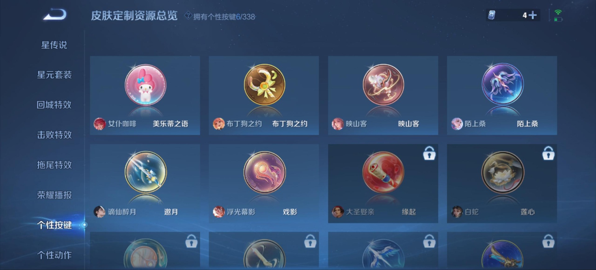 刘邦德古拉伯爵,阿轲暗夜猫娘,阿轲节奏热浪,廉颇地狱岩魂,小乔缤纷独角兽,小乔青蛇,孙策猫狗日记,露娜紫霞仙子,刘禅绅士熊喵,宫本武藏鬼剑武藏,李白谪仙醉月,花木兰水晶猎龙者,安琪拉心灵骇客,蒙犽百解令,亚瑟心灵战警,嬴政摇滚巨星,嬴政暗夜贵公子,李元芳逐浪之夏,墨子金属风暴,蔡文姬舞动绿茵,嫦娥拒霜思