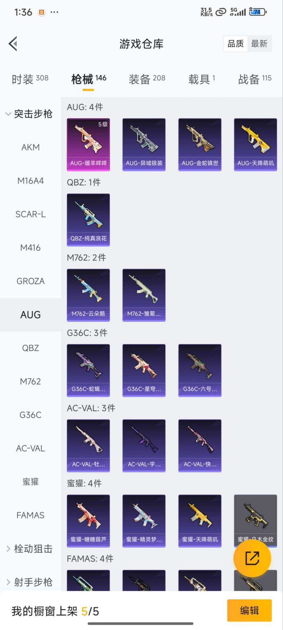 M416-电玩时刻,GROZA-镜光银凌,AUG-暖羊咩咩,Kar98K-巳巳如意,UMP45-量子极限,UMP45-宇宙意志
