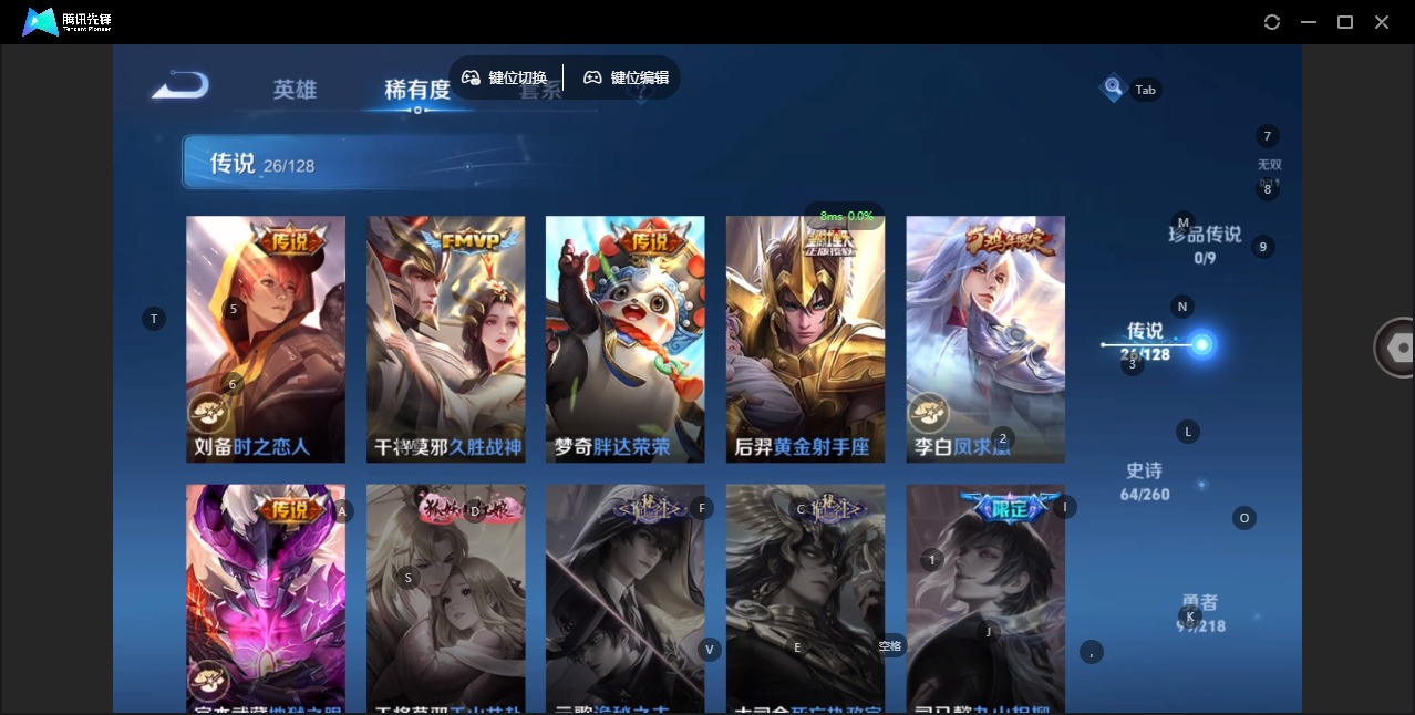 - PX_2090616- 可二次 V8 贵族积分52868 苹果QQ/159皮肤/122英雄/0典藏/0珍品无双/0无双/0珍品传说/17传说/45史诗/6稀有英雄 【1 星传说皮肤】,幽冥之眼 宫本武藏, 【17 传说皮肤】,启明星使 虞姬,碎云 百里守约,无双飞将 马超,地狱火 孙悟空,齐天大圣 孙悟空,仲夏夜之梦 貂蝉,记忆之芯 公孙离,地狱之眼 宫本武藏,久胜战神 干将莫邪,末日机甲 孙尚香
