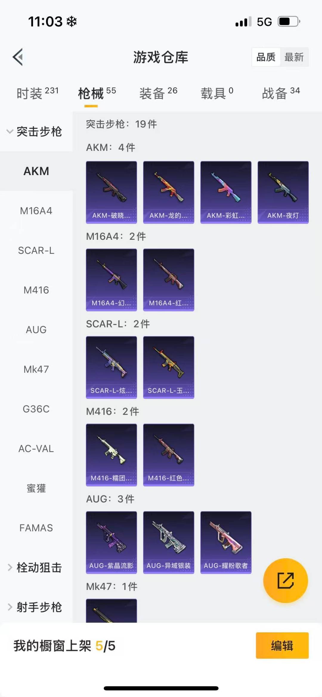 - PX_2081375-实名: 可修改 时装数: 476 载具数: 1 枪械数: 176 战备数: 130 热门装扮: 霁雪冰心,彩虹甜喵,守护天翼,千金淑猫 载具: 幻影随行 稀有枪皮: Kar98K未来歌姬【5级】,SCAR-L-锦绣绵绵【5级】,M416电玩时刻【5级】,Mk14精灵梦叶罗丽【7级】,Kar98K-巳巳如意【5级】