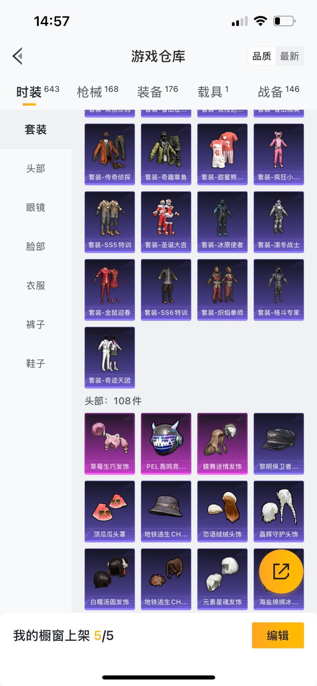 套装-鹰眼刺客,套装-胖达团团,套装-浪漫波比,奇迹天团套装,套装-蝶舞迷情,套装-神秘黑猫,套装-大橘为重,套装-软萌银虎,套装-PEL轰鸣竞梦者,套装-草莓生巧,套装-浪客战士,角色-樱桃泡泡