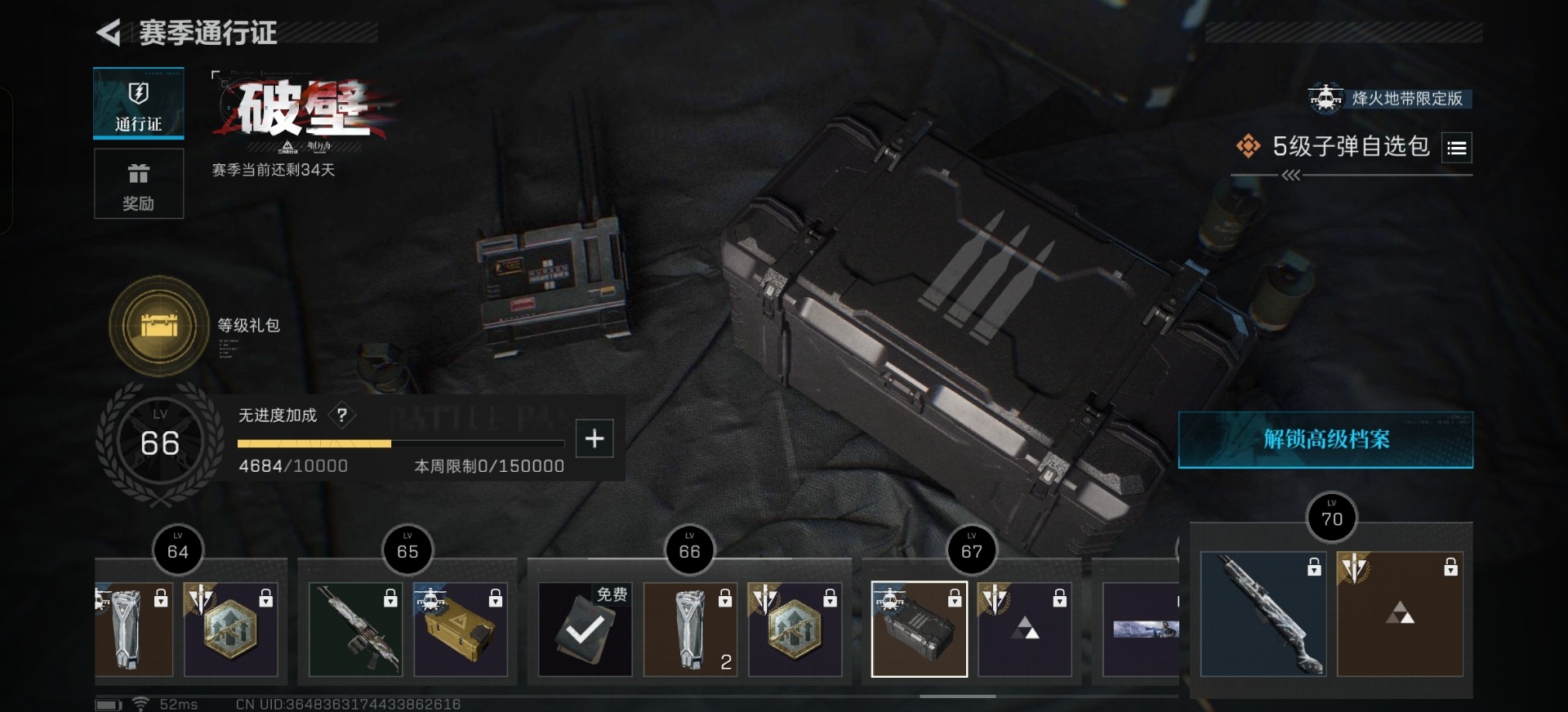[11819340]总资产:119.5 2传说枪械 进阶安全箱(9.17到期) 可二次 可修改实名 烽火地带段位:钻石 全面战场段位:无段位 哈夫币:65.775 传说武器皮肤:复合弓-黑-天际线,CAR-15突击步枪-阿米娅 史诗武器皮肤:M16A4突击步枪-竞赛选手,SV-98狙击步枪-林中猎手,M250通用机枪-囚徒