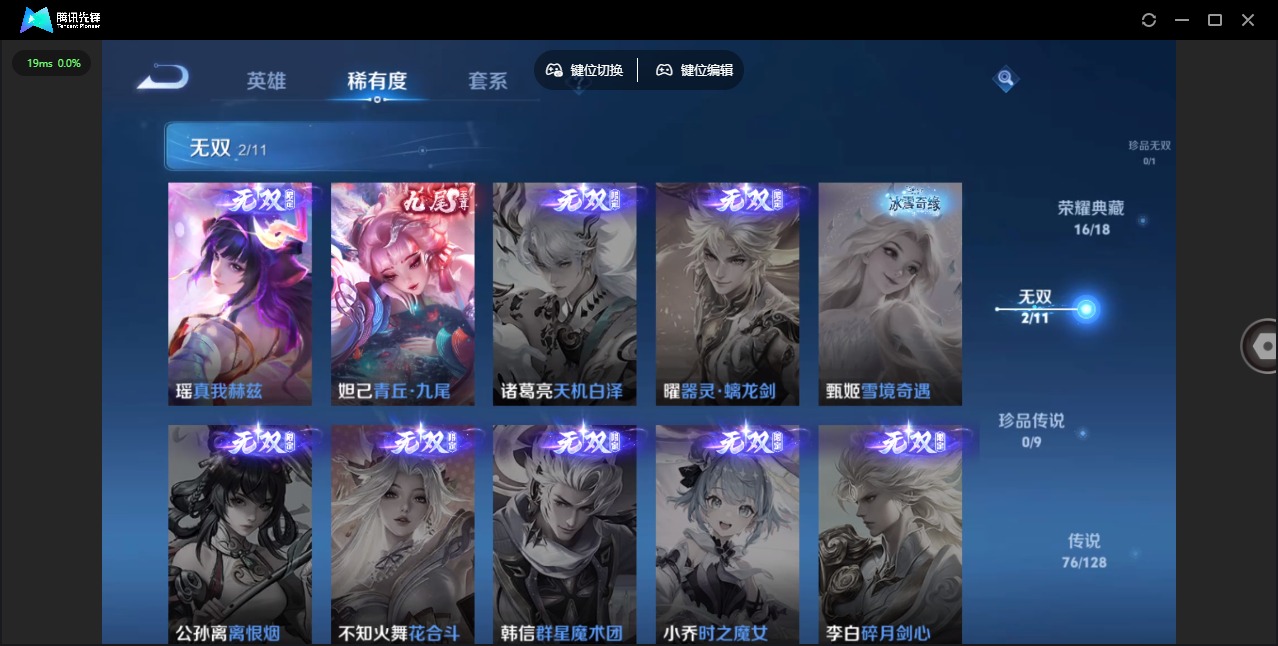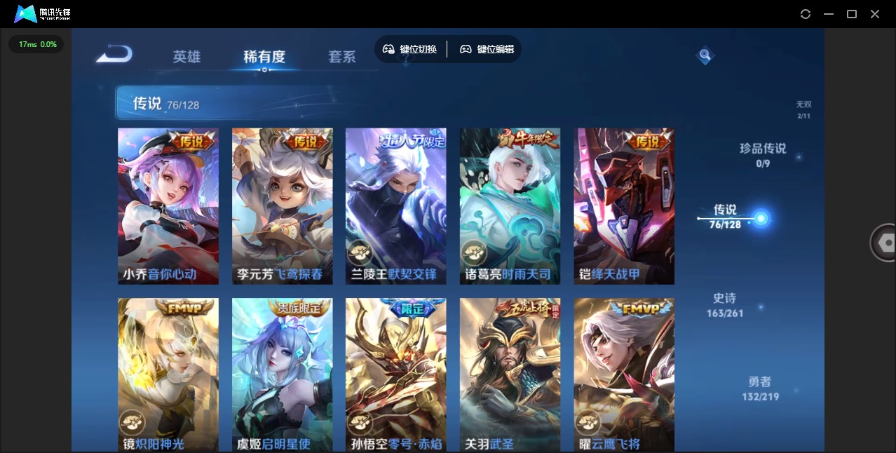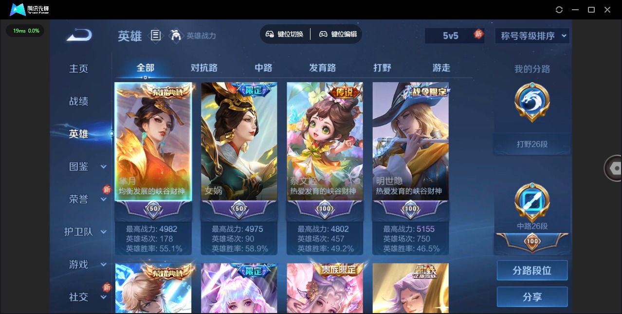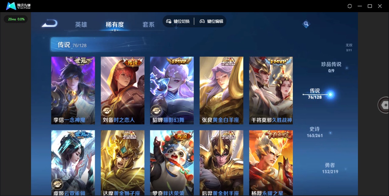 - [12259009]V6 6传说 123英雄 175皮肤 可修改实名 优质装备:画中仙,涂山容容 传说皮:祥瑞亨通,幻光神枪 珍宝阁皮:万物之道,蔷薇恋人 限定皮:愿照·九州拓(澜年限),愿照·山河定(司空震年限),逐霄战戟,鸣野蒿,五谷丰年,梁祝,李小龙,孙行者,大圣娶亲 史诗皮:鸭鸭历险记-刘禅,器灵·浮梦炉,化蝶舞,星界战将,龙之律动,雪豹·霜爪,石田雨龙,茶境仙,百相守梦-黄忠,紫霞仙子,电玩小子(小书包),白龙吟,黄金分割率,特工魅影,江河有灵,冰冠公主,猫狗日记-大乔,乱世虎臣,女仆咖啡,水果甜心,心灵骇客,暗隐猎兽者,鬼剑武藏,乐园奇幻夜,天秀·启明,地狱岩魂,纤云弄巧,拒霜思,缤纷独角兽,乘风破浪,箭羽风息,金属风暴,鹰眼统帅,魅力维加斯