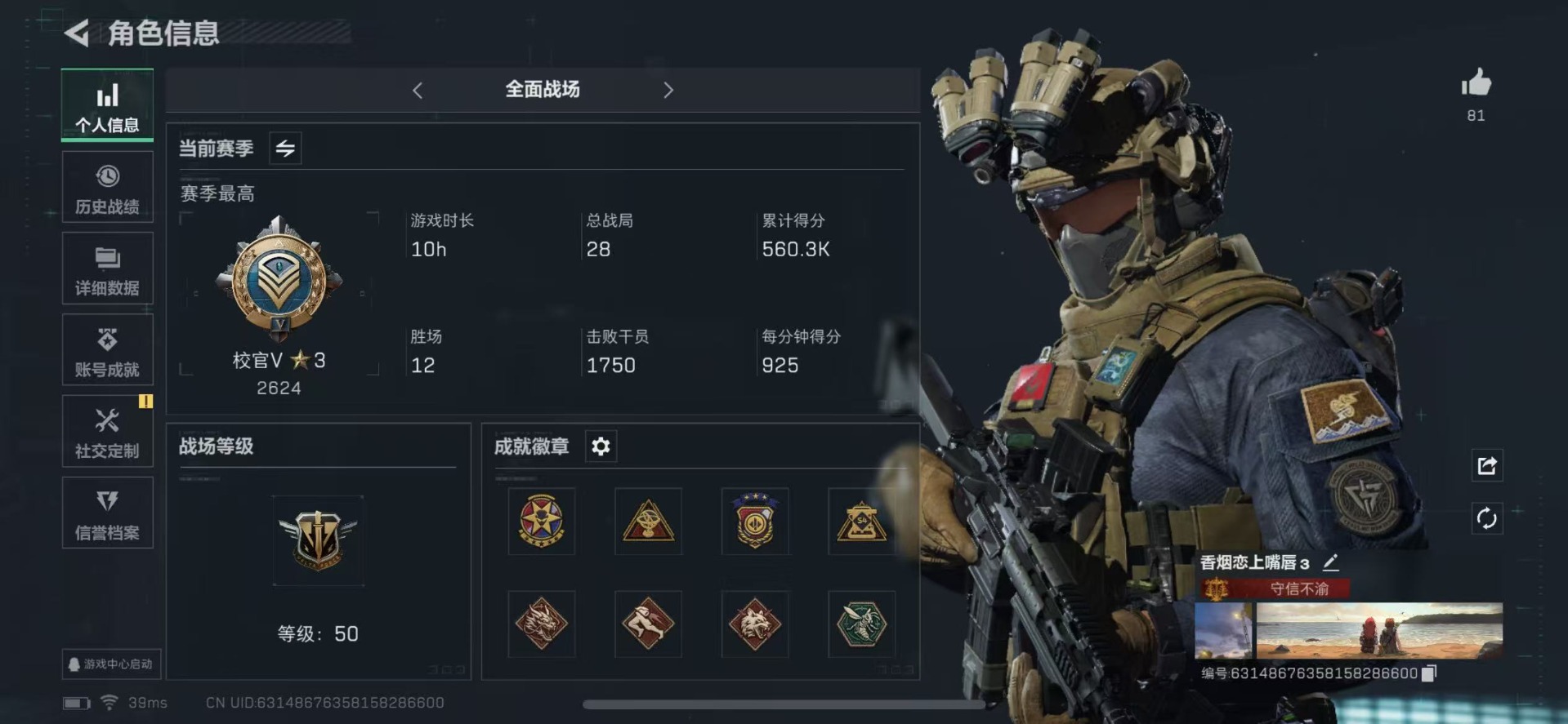 [11819489]总资产:100.7M 3干员外观 2近战传说 13传说枪械 哈夫币:448.021K 可二次 可修改实名 优质装备:近战-怜悯,近战-北极星,顶级安全箱(3x3) 烽火地带段位:三角洲巅峰 全面战场段位:校官 传说武器皮肤:M7战斗步枪-巳蛇,SCAR-H战斗步枪-水墨云图,SCAR-H战斗步枪-铁艺苍穹,AKM突击步枪-流光铂影,AK-12突击步枪-夜鹰,M4A1突击步枪-阿米娅,K416突击步枪-幻想曲,M7战斗步枪-维京,M4A1突击步枪-蚀金玫瑰,AKM突击步枪-赤枭,QBZ95-1突击步枪-破军 史诗武器皮肤:K416突击步枪-暗鸦,QBZ95-1突击步枪-ACE,AUG突击步枪-特勤执行,AUG突击步枪-蝮蛇,Ash-12战斗步枪-守夜人,M16A4突击步枪-竞赛选手,SG552突击步枪-尖端治疗,SG552突击步枪-深海恐惧,AKM突击步枪-林中猎手,SCAR-H战斗步枪-囚徒,QBZ95-1突击步枪-曙光,SCAR-H战斗步枪-危险实验,SCAR-H战斗步枪-国风,M7战斗步枪-禁卫 干员外观:红狼-蚀金玫瑰,骇爪-水墨云图,露娜-黑·天际线