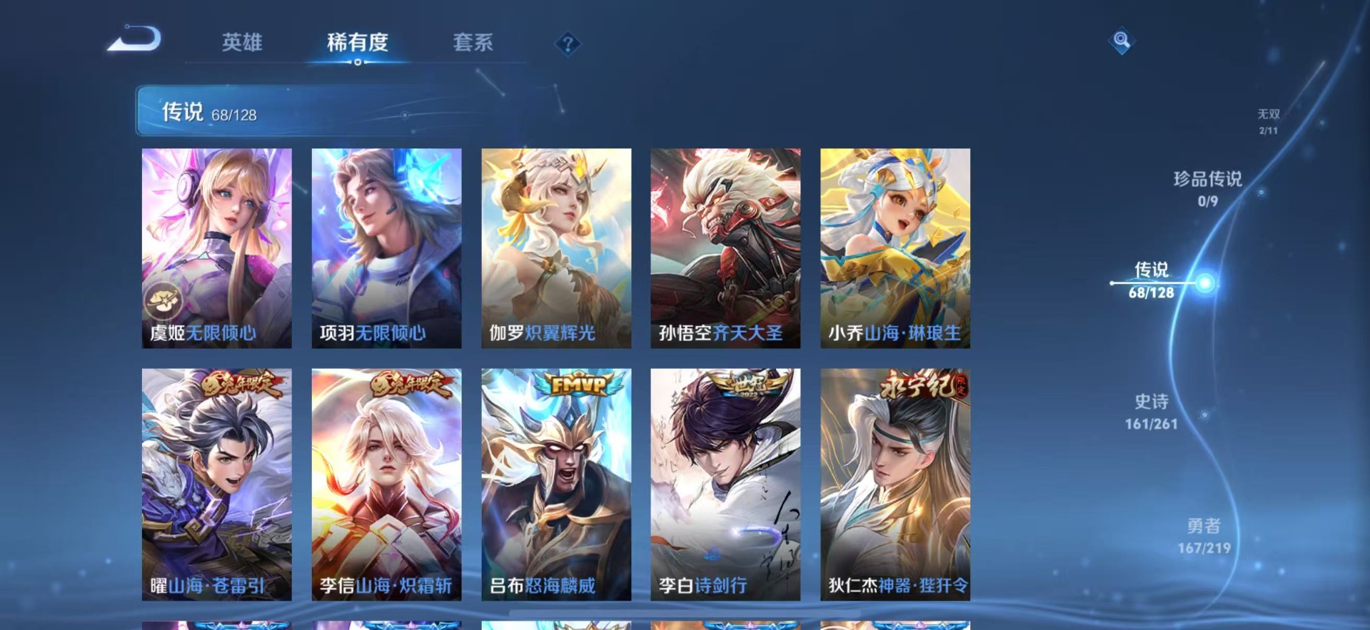 - [11324937]V7 1典藏 6传说 124英雄 197皮肤 可修改实名 优质装备:弑枪猎影(韩信典藏),久胜战神,地狱火,淬星耀世 传说皮:典韦战鼓燎原 珍宝阁皮:胡桃夹子 限定皮:鸣野蒿,凤求凰(白切鸡),凤凰于飞,游园惊梦,梁祝,逐梦之星,李小龙,青春决赛季 史诗皮:鸭鸭历险记-刘禅,化蝶舞,星界战将,龙之律动,石田雨龙,茶境仙,蒙犽顽岩魄,紫霞仙子,苍穹之光,黄金分割率,无限星赏官,偶像歌手,猫狗日记-大乔,节奏热浪,摇滚巨星,水果甜心,星夜王子,德古拉伯爵,心灵战警,纤云弄巧,繁星吟游(呼啦呼啦),曙光守护者,圣诞恋歌,鹰眼统帅,魅力维加斯