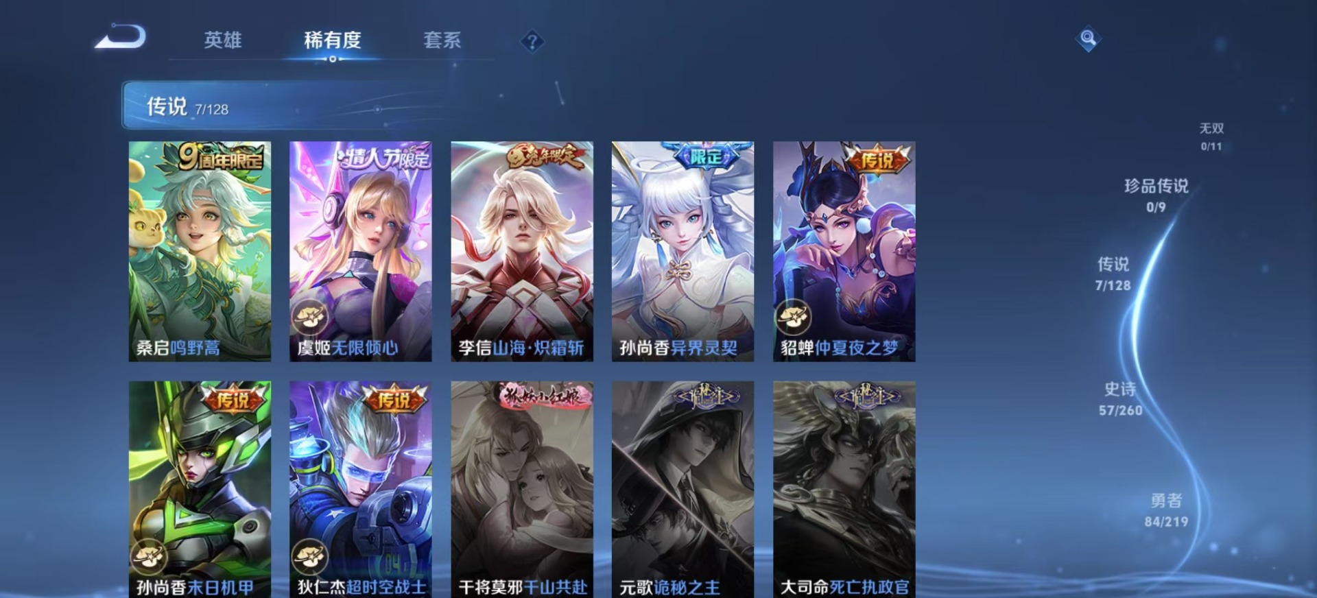 - [12258645]V10 14典藏 1无双 37传说 126英雄 391皮肤 典藏英雄武则天 可修改实名 优质装备:天鹅之梦(小乔典藏),星空梦想(太空人),倪克斯神谕(宇宙婆娘),无限飓风号(高达),活力突击,杀手不太冷,大秦宣太后,鸣剑·曳影,全息碎影(猴子典藏),星域神启(倪克斯贼亮),九霄神辉(木兰典藏),赤影疾锋,银白咏叹调(倪克斯侍卫),幻阙歌(貂蝉典藏),神器·明辉仪,黄金狮子座,黄金射手座,冠军飞将,云鹰飞将(小将军),绛天战甲(鸡嘴战神),猫影幻舞,炽阳神光,一念神魔,末日机甲-孙尚香(绿蚂蚱),海洋之心,地狱之眼,音你心动-周瑜,胖达荣荣,时之恋人-刘备(电焊工),游龙清影(小青龙),淬星耀世,超时空战士-狄仁杰,神器·狴犴令,神器·明辉仪,山海·炽霜斩(李信年限),山海·琳琅生(小乔年限),山海·苍雷引(电光曜子),炽翼辉光(娃娃菜牛角包),燃星之曲,画中仙,艾琳觅芳踪 珍宝阁皮:女武神 限定皮:鸣野蒿,白虎志(电光耗子),凤求凰(白切鸡),绯月行,白鹤梁神女,神威(电光马子),飞衡(韩信年限),玄嵩(庄周年限),山海·碧波行(瑶年限),无限倾心-项羽,瑞麟志(木兰年限),遇见飞天,诗剑行,无限倾心-虞姬,齐天大圣,怒海麟威,降魔,青龙志(铠年限),冰锋战神,幽恒(沐浴露),游园惊梦,梁祝,龙胆,逐梦之翼,烈魂,虎魄,李小龙,逐梦之影,逐梦之光,玄武志(苏烈年限),朱雀志(守约年限),永曜之星,辉光之辰,奇迹圣诞,真爱至上,纯白花嫁,一生所爱,大圣娶亲,引擎之心,天魔缭乱,青春决赛季,冰霜恋舞曲,热情桑巴,美猴王,时之奇旅-妲己,神器·万象笔,梦圆繁星,山海·玄木吟(马可年限),冰霜神祇 史诗皮:化蝶舞,谪仙醉月,龙之律动,埋骨钱,遇见神鹿,苍穹之光,电玩小子(小书包),白龙吟,黄金分割率,特工魅影,千年之狐,江河有灵,蒙恬荣光圣徽,无限星赏官,冰冠公主,青蛇,偶像歌手,晚萤,电玩·爆裂旋风,暗夜猫娘,龙骑士(小龙虾),末日机甲-吕布,猫狗日记-孙策,猫狗日记-大乔,乱世虎臣,节奏热浪,修罗,女仆咖啡,摇滚巨星,水果甜心,绅士熊喵,天才门将,星夜王子,心灵骇客,功夫厨神,德古拉伯爵,暗隐猎兽者,幽灵船长,鬼剑武藏,心灵战警,舞动绿茵,地狱岩魂,纤云弄巧,繁星吟游(呼啦呼啦),缤纷独角兽,乘风破浪,逐浪之夏,水晶猎龙者,曙光守护者,箭羽风息,唤灵魅影,金属风