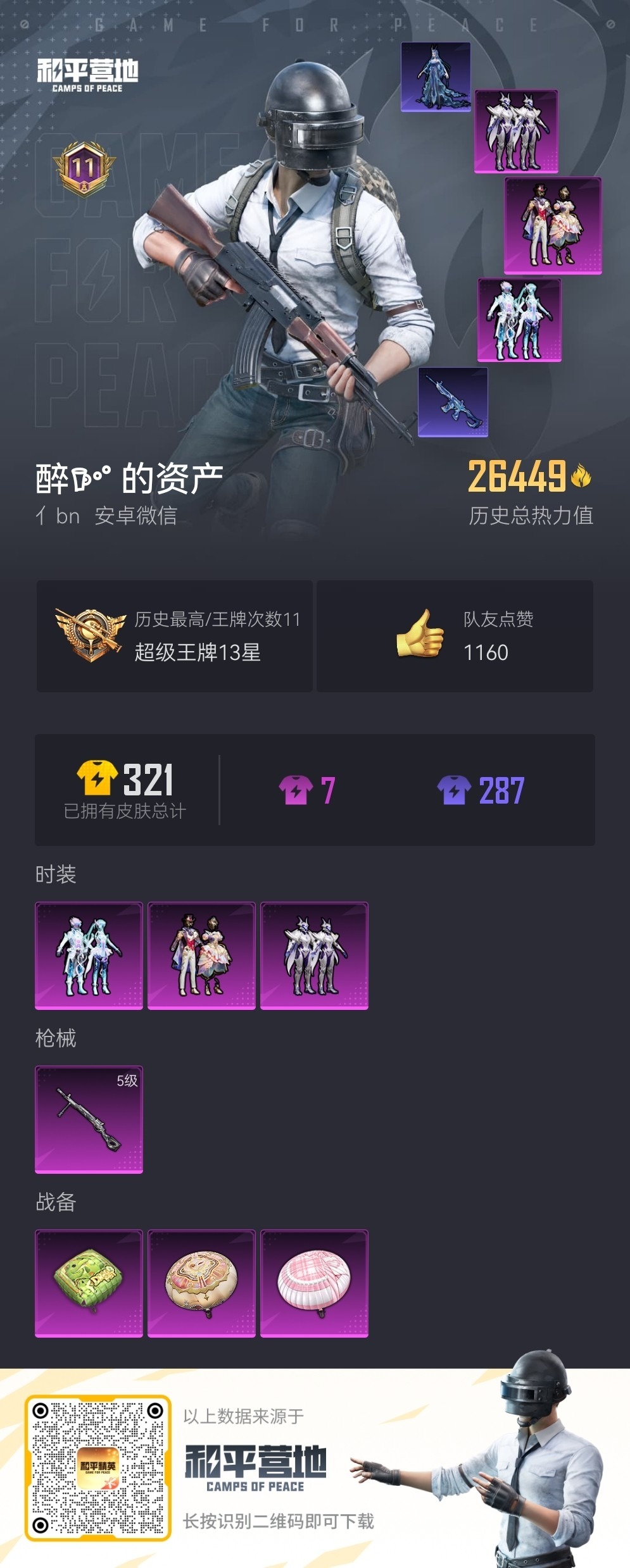 - PX_2096102- 苹果手Q-12王牌印记-4粉装-7特效枪-0载具-56725热力值-127套装-165枪皮-3卓越印记-2传奇印记 【4粉装】,第五大道,彩虹甜喵,千金淑猫,金丰海韵 【7特效枪】AKM-炫紫旋律-6级 AKM-绿萝繁花-5级 SCAR-L-锦绣绵绵-5级 SCAR-L-青春物语-6级 M416-心之恋语-7级 Kar98K-巳巳如意-5级 P90-金丰海韵-7级 【2稀