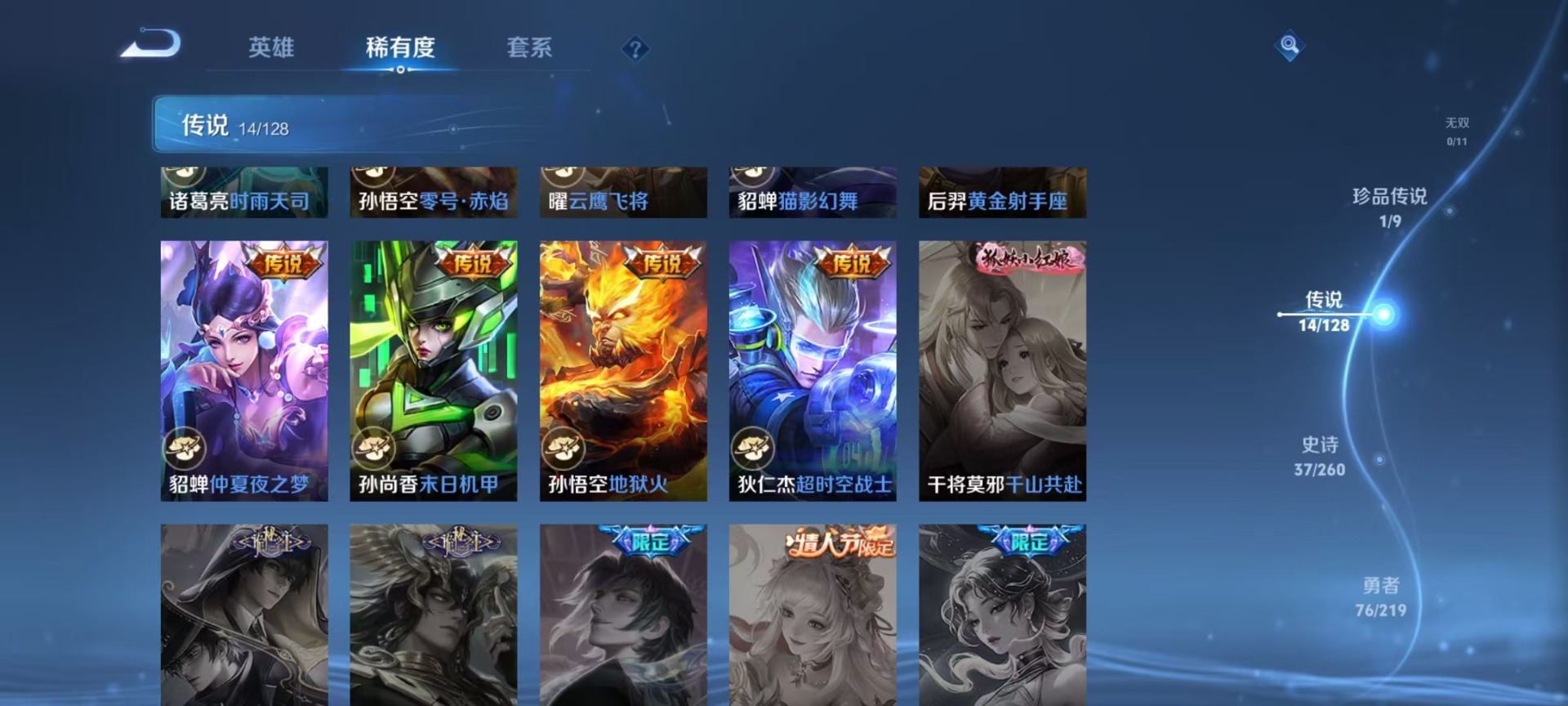 - [11526728]V10 7典藏 4无双 5珍品传说 46传说 125英雄 442皮肤 可修改实名 优质装备:天鹅之梦(小乔典藏),杀手不太冷,鸣剑·曳影,星域神启(倪克斯贼亮),九霄神辉(木兰典藏),弑枪猎影(韩信典藏),碎月剑心(李白无双),花合斗,离恨烟(公孙离无双),器灵·螭龙剑,最初的交响(伽罗典藏),怪盗基德,器灵·落星盏,大耳狗之梦,黑崎一护,黄金白羊座,久胜战神,炽阳神光,一念神魔,云霓雀翎,末日机甲-孙尚香(绿蚂蚱),地狱火,胖达荣荣,李逍遥,时之恋人-刘备(电焊工),超时空战士-狄仁杰,挚爱之约,碎云,神器·狴犴令,山海·炽霜斩(李信年限),山海·琳琅生(小乔年限),山海·苍雷引(电光曜子),画中仙,浮生妄,惊梅引,澜逐花归海,艾琳觅芳踪,千劫归真 珍品传说:时之奇旅-孙策 传说皮:乘龙·问璇玑(孙尚香年限),乘龙·铭钟鼎(赵云年限),乘龙·淬吴钩(孙策年限),吕布曦玄引,云诺千山,铠冥王哈迪斯,续相思,星之鸣奏,幻光神枪 珍宝阁皮:妄想食味,优雅恋人,女武神 限定皮:愿照·九州拓(澜年限),愿照·山河定(司空震年限),愿照·千秋盛(女娲年限),逐霄战戟,鸣野蒿,至尊宝,凤求凰(白切鸡),太华(伽罗年限),傲雪梅枪,前尘镜,绯月行,白晶晶,神威(电光马子),飞衡(韩信年限),玄嵩(庄周年限),山海·碧波行(瑶年限),遇见飞天,高山流水,诗剑行,齐天大圣,五谷丰年,冰锋战神,武圣,梁祝,天狼狩猎者,李小龙,逐梦之影,朱雀志(守约年限),如梦令-后羿,默契交锋-兰陵王,真爱至上,孙行者,猪悟能,一生所爱,大圣娶亲,引擎之心,青春决赛季,冰霜恋舞曲,云端筑梦师,蜜橘之夏,匿光追影者,寅虎·心曲(虎婆),寅虎·赤拳(老虎年限),百木心枪,玉兔公主,山海·玄木吟(马可年限),冰霜神祇 史诗皮:鸭鸭历险记-刘禅,飞车小橘子,器灵·浮梦炉,糖绘人间,绮世丹青,化蝶舞,灵蛊蚀心,星界战将,谪仙醉月,龙之律动,雪豹·霜爪,石田雨龙,百相守梦-周瑜,茶境仙,炽弈燎原,东方月初,埋骨钱,海诺心动手记,上官婉儿群星魔术团,曹操夜都魔契,乘龙·聚宝船(安琪拉年限),乘龙·忆丹青(大乔年限),紫霞仙子,苍穹之光,电玩小子(小书包),黄金分割率,特工魅影,千年之狐,永昼,魅语,蒙恬荣光圣徽,无限星赏官,冰冠公主,偶像歌手,白蛇,晚萤,电玩·爆裂旋风,暗夜猫娘,龙骑士(小龙虾),末日机甲-吕