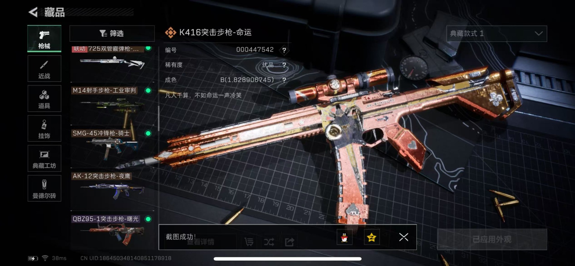 [11821936]总资产:80.5M 3干员外观 1近战传说 20传说枪械 哈夫币:366.735K 顶级安全箱(3×3)9.15号到期 可二次 可修改实名 优质装备:近战-北极星,K416突击步枪-命运(典藏),顶级安全箱(3x3) 烽火地带段位:黑鹰 全面战场段位:无段位 传说武器皮肤:AK-12突击步枪-夜鹰,SMG45冲锋枪-骑士,93R-捞点薯条,AWM狙击步枪-捞点薯条,腾龙突击步枪-捞点薯条,AK-12突击步枪-特斯拉线圈,CAR-15突击步枪-阿米娅,SR-3M紧凑突击步枪-特斯拉线圈,UZI冲锋枪-特斯拉线圈,勇士冲锋枪-能天使-午夜邮差,Vector冲锋枪-能天使-午夜邮差,复合弓-黑-天际线,M4A1突击步枪-阿米娅,M14射手步枪-工业审判,725双管霰弹枪-送葬人-无题密令,K437突击步枪-北极星,QCQ171冲锋枪-北极星,M4A1突击步枪-蚀金玫瑰 史诗武器皮肤:AUG突击步枪-蝮蛇,M700狙击步枪-蝮蛇,PKM通用机枪-蝮蛇,Ash-12战斗步枪-守夜人,M16A4突击步枪-竞赛选手,PKM通用机枪-守夜人,AS Val突击步枪-尖端治疗,M700狙击步枪-守夜人,SR-25射手步枪-尖端治疗,PKM通用机枪-荒野求生,MP5冲锋枪-深海恐惧,勇士冲锋枪-深海恐惧,SG552突击步枪-深海恐惧,AKM突击步枪-林中猎手,SR-3M紧凑突击步枪-荒野求生,M1014霰弹枪-林中猎手,SV-98狙击步枪-林中猎手,PTR-32突击步枪-英雄,SVD狙击步枪-荒野求生,M250通用机枪-囚徒,SV-98狙击步枪-囚徒,SCAR-H战斗步枪-囚徒,腾龙突击步枪-无垢,MP7冲锋枪-无垢,PSG-1射手步枪-无垢,QBZ95-1突击步枪-曙光,Vector冲锋枪-阿萨拉文明,SVD狙击步枪-阿萨拉工艺,M700狙击步枪-竞技风 干员外观:红狼-蚀金玫瑰,露娜-黑·天际线,蛊-能天使·午夜邮差