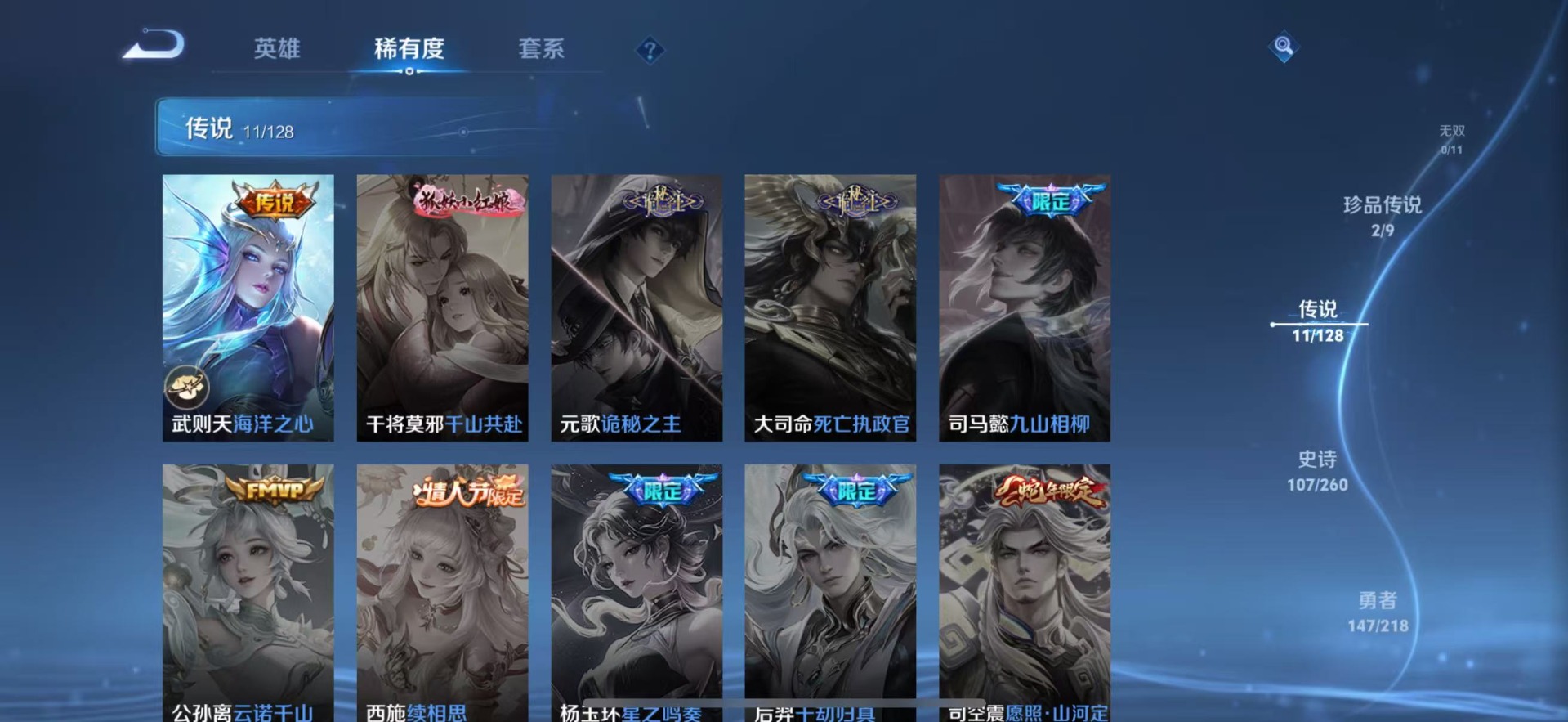 - [12114308]V10 4典藏 25传说 126英雄 419皮肤 典藏英雄武则天 可修改实名 优质装备:倪克斯神谕(宇宙婆娘),赤影疾锋,银白咏叹调(倪克斯侍卫),幻阙歌(貂蝉典藏),黄金射手座,冠军飞将,猫影幻舞,久胜战神,云霓雀翎,仲夏夜之梦(大飞蛾),海洋之心,淬星耀世,挚爱之约,无双飞将,妄想实况,艾琳觅芳踪,涂山容容 传说皮:貂蝉曦玄引 珍宝阁皮:胡桃夹子,优雅恋人,蔷薇恋人,女武神,玩趣恶龙 限定皮:鸣野蒿,至尊宝,白虎志(电光耗子),凤求凰(白切鸡),凤凰于飞,太华(伽罗年限),梅西,武陵仙君(小桃花),异界灵契(白毛香),时之彼端,魔法小厨娘,神威(电光马子),飞衡(韩信年限),玄嵩(庄周年限),遇见飞天,高山流水,五谷丰年,冰锋战神,幽恒(沐浴露),武圣,天狼运算者,游园惊梦,梁祝,天狼狩猎者,龙胆,逐梦之翼,逐梦之星,烈魂,岱宗(典韦年限),虎魄,逐梦之音,天狼征服者,奔雷神使(牛魔年限),李小龙,逐梦之影,逐梦之光,朱雀志(守约年限),永曜之星,辉光之辰,如梦令-嫦娥,如梦令-后羿,霸王别姬-虞姬,圣诞老人,奇迹圣诞,猪悟能,大圣娶亲,引擎之心,天魔缭乱,青春决赛季,冰霜恋舞曲,蜜橘之夏,热情桑巴,神奇女侠,美猴王,寅虎·御盾(廉颇年限),寅虎·赤拳(老虎年限),百木心枪,玉兔公主,深海之息(深海大菠萝) 史诗皮:灵蛊蚀心,星界战将,蒙犽顽岩魄,紫霞仙子,苍穹之光,电玩小子(小书包),黄金分割率,特工魅影,千年之狐,永昼,江河有灵,雪夜绮愿(周瑜),魅语,高渐离燃音魔法,蒙恬荣光圣徽,冰冠公主,偶像歌手,晚萤,电玩·爆裂旋风,暗夜猫娘,龙骑士(小龙虾),末日机甲-吕布,猫狗日记-孙策,猫狗日记-大乔,乱世虎臣,节奏热浪,修罗,女仆咖啡,摇滚巨星,水果甜心,绅士熊喵,天才门将,星夜王子,心灵骇客,功夫厨神,德古拉伯爵,暗隐猎兽者,幽灵船长,鬼剑武藏,心灵战警,舞动绿茵,地狱岩魂,纤云弄巧,繁星吟游(呼啦呼啦),拒霜思,缤纷独角兽,乘风破浪,逐浪之夏,月团寄思,水晶猎龙者,曙光守护者,箭羽风息,金属风暴,原初追逐者,圣诞狂欢,圣诞恋歌,鹰眼统帅,王者之锤,暗夜贵公子,魅力维加斯,黎明之约,寅虎·御盾,无心,未来纪元-赵云