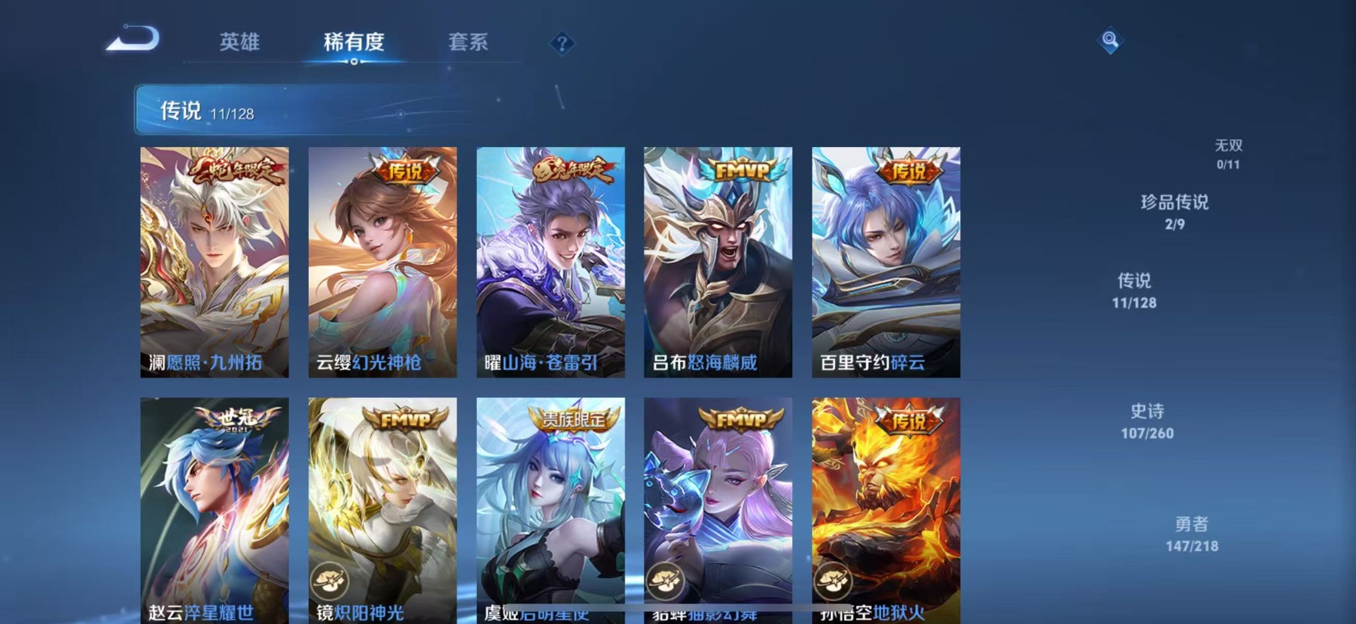 - [11881594]V8 2典藏 18传说 125英雄 294皮肤 可修改实名 优质装备:鸣剑·曳影,弑枪猎影(韩信典藏),黄金狮子座,绛天战甲(鸡嘴战神),炽阳神光,末日机甲-孙尚香(绿蚂蚱),地狱火,仲夏夜之梦(大飞蛾),胖达荣荣,时之恋人-刘备(电焊工),淬星耀世,超时空战士-狄仁杰,碎云 珍宝阁皮:妄想食味,女武神 限定皮:鸣野蒿,至尊宝,白虎志(电光耗子),凤求凰(白切鸡),神威(电光马子),飞衡(韩信年限),诗剑行,齐天大圣,怒海麟威,冰锋战神,梁祝,天狼绘梦者,李小龙,朱雀志(守约年限),山海·玄木吟(马可年限),冰霜神祇 史诗皮:鸭鸭历险记-刘禅,化蝶舞,龙之律动,百相守梦-周瑜,茶境仙,百相守梦-黄忠,紫霞仙子,电玩小子(小书包),白龙吟,黄金分割率,特工魅影,千年之狐,永昼,电玩·爆裂旋风,真我赫兹(百里守约),蒙恬荣光圣徽,偶像歌手,无限星赏官,晚萤,冰冠公主,末日机甲-吕布,猫狗日记-孙策,时之恋人-孙尚香,乱世虎臣,节奏热浪,修罗,女仆咖啡,摇滚巨星,水果甜心,绅士熊喵,星夜王子,心灵骇客,功夫厨神,德古拉伯爵,暗隐猎兽者,幽灵船长,鬼剑武藏,舞动绿茵,纤云弄巧,繁星吟游(呼啦呼啦),缤纷独角兽,逐浪之夏,水晶猎龙者,曙光守护者,热力回旋,箭羽风息,唤灵魅影,金属风暴,原初追逐者,圣诞恋歌,鹰眼统帅,暗夜贵公子,魅力维加斯,奇遇舞章,无心,未来纪元-赵云