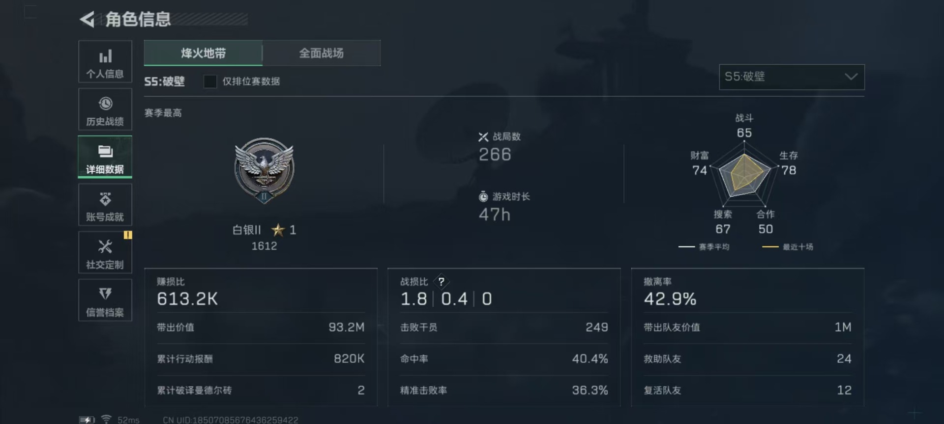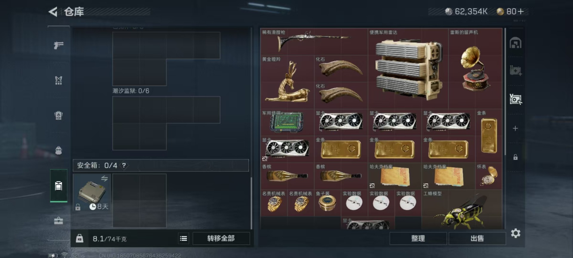[11822660]总资产:114.9M 6传说枪械 哈夫币:62.354K 进阶安全箱(2×2)9.15号到期 可二次 可修改实名 烽火地带段位:白银 全面战场段位:无段位 传说武器皮肤:AWM狙击步枪-捞点薯条,腾龙突击步枪-捞点薯条,93R-捞点薯条,勇士冲锋枪-能天使-午夜邮差,Vector冲锋枪-能天使-午夜邮差,M4A1突击步枪-阿米娅 史诗武器皮肤:QJB201轻机枪-Old Habits,M250通用机枪-囚徒,SV-98狙击步枪-林中猎手