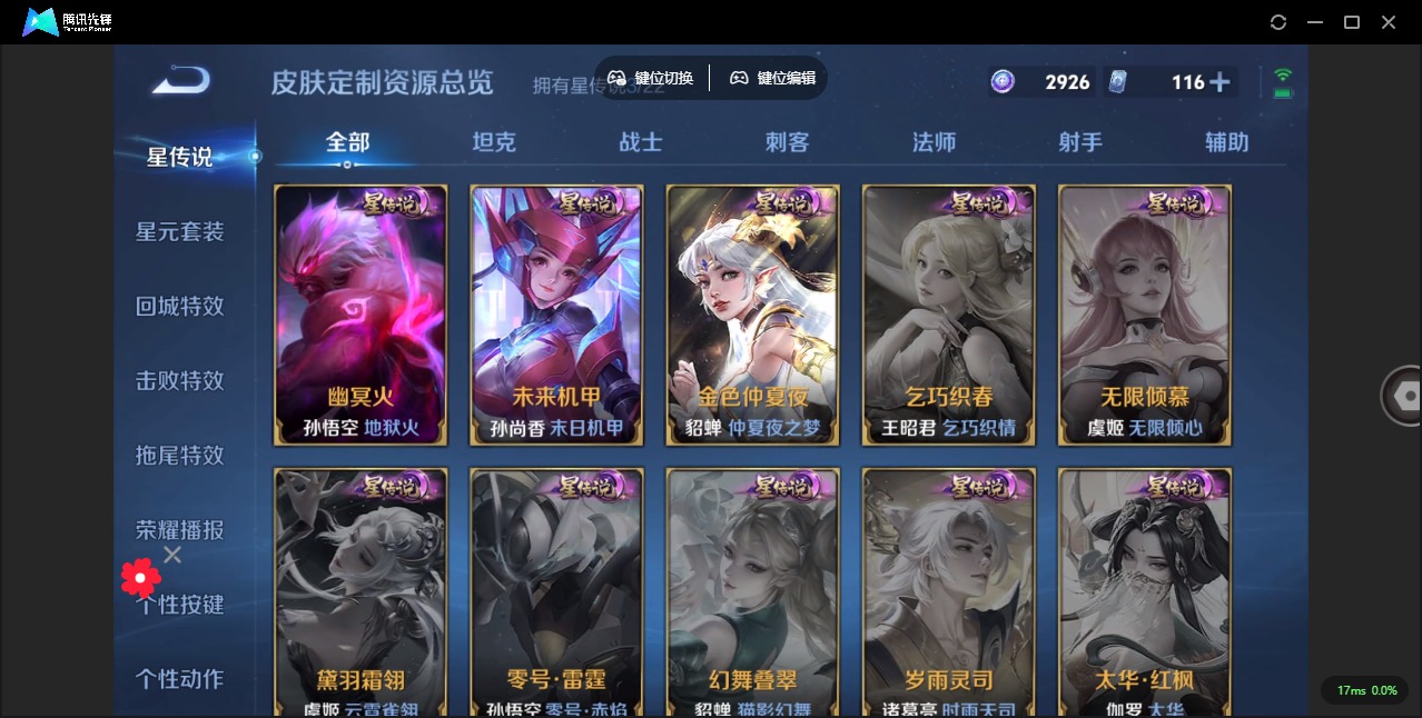 - PX_2097086- 可二次 V9 贵族积分 安卓QQ/268皮肤/123英雄/1典藏/0珍品无双/0无双/0珍品传说/28传说/92史诗/8稀有英雄 【1 星传说皮肤】,幽冥之眼 宫本武藏, 【1 典藏皮肤】,赤影疾锋 关羽, 【28 传说皮肤】,鹤归松栖 云缨,武圣 关羽,启明星使 虞姬,白虎志 百里玄策,李逍遥 曜,地狱火 孙悟空,云鹰飞将 曜,永曜之星 杨戬,凤求凰 李白,灼幽烈阳 东