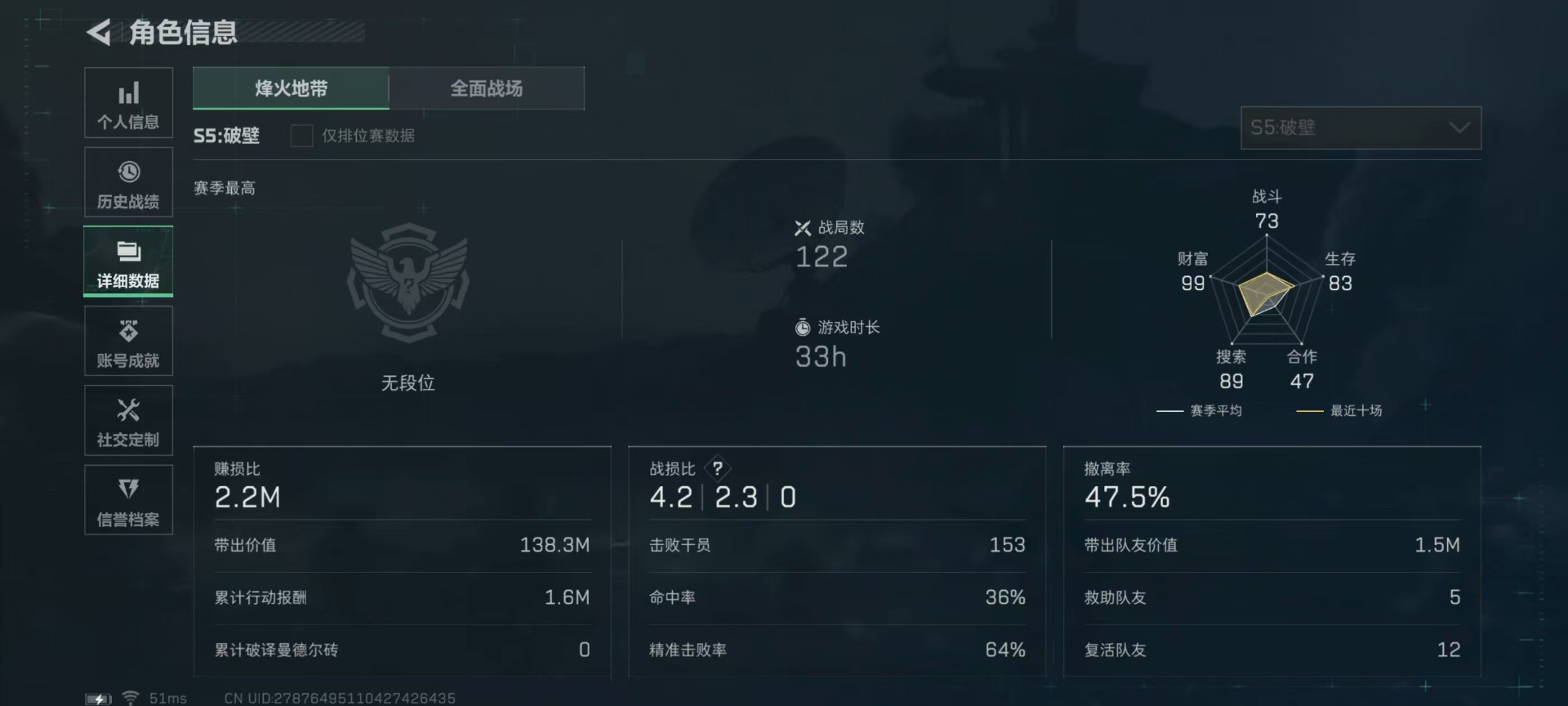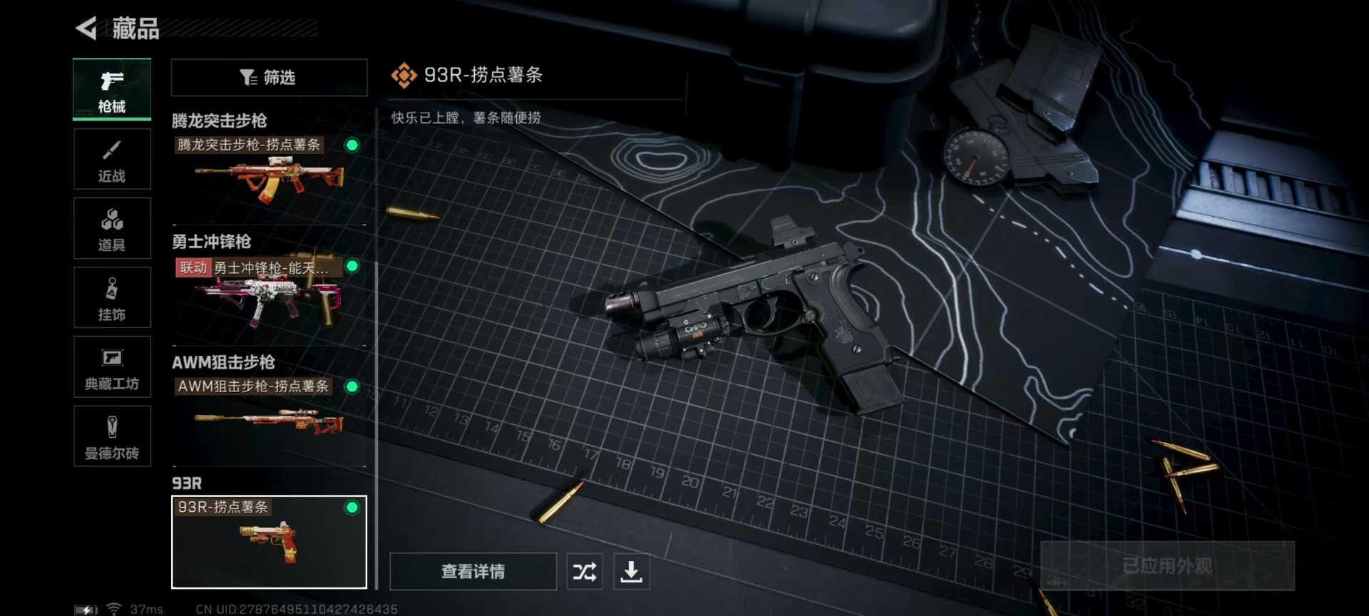 [11822948]总资产:97.6M 6传说枪械 哈夫币:31.628K 可二次 可修改实名 烽火地带段位:无段位 全面战场段位:列兵 传说武器皮肤:93R-捞点薯条,AWM狙击步枪-捞点薯条,腾龙突击步枪-捞点薯条,CAR-15突击步枪-阿米娅,勇士冲锋枪-能天使-午夜邮差,M4A1突击步枪-阿米娅