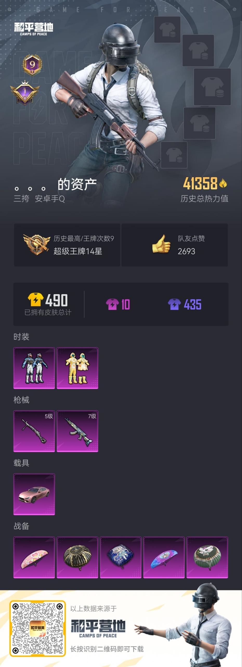 - PX_2089211- 包人脸 安卓手Q-12王牌印记-6粉装-11特效枪-0载具-75438热力值-181套装-233枪皮-1卓越印记-0传奇印记, 【6粉装】,黄族统领,紫钛骑兵,天星战神,海盐物语,圣堂之誓,青空秋雨, 【11特效枪】,AKM-绿萝繁花-5级,SCAR-L-青春物语-7级,M416-风花雪月-6级,GROZA-镜光银凌-4级,AUG-暖羊咩咩-5级,M762-青锋波束-5级,
