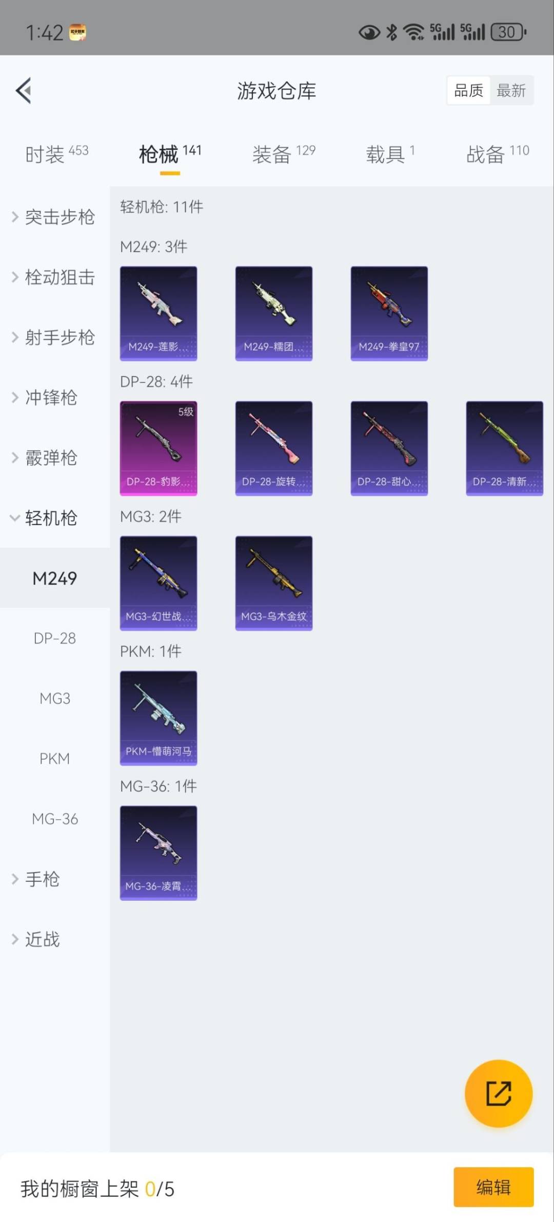 - [11965093]2粉装 5特效枪 2印记 可二次 可修改实名 优质装备:M249猪猪侠,SCAR-L-锦绣绵绵,M416电玩时刻,Kar98K-巳巳如意 热门装扮:第五大道,猪猪侠,爱崽白熊,深海小丑鱼 稀有枪皮:DP-28-豹影疾电 五级特效枪:五级Kar98K-巳巳如意,五级DP-28-豹影疾电,五级M416-电玩时刻,五级M249-猪猪侠,五级SCAR-L-锦绣绵绵 紫色装扮:SS31特训套装,SS30特训套装,霓虹街区,缤纷果语,鹤鸣,龟仙人,海岛探路者,破蛋小黄鸡,星途旅人,纯真浪花,热情海星,SS28特训,卖崽青蛙,创世·追猎,冰公主,巳巳如意,竞技名士,情公主,粉红小猪,湖雨初晴,菲菲,超人强,焰鹰斗篷,幻羽潜行,幽夜迷踪,SS27特训,霓彩缤纷,浪漫天命,春光漫游,快闪甜心,SS32特训服(SS32特训套装),白糯汤圆,漫步者 优质战备:创世·救赎降落伞,幻海精灵飞行器,精灵梦叶罗丽降落伞,星空武士降落伞,江南烟雨降落伞,橘柚倾心降落伞,祥瑞锦鲤飞行器,猪猪侠降落伞,喜羊羊与灰太狼降落伞,第五大道降落伞