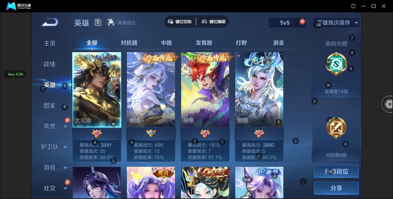 - [11520513]V5 4传说 105英雄 93皮肤 可修改实名 优质装备:超时空战士-狄仁杰 传说皮:幻光神枪 珍宝阁皮:万物之道 限定皮:愿照·九州拓(澜年限),逐霄战戟,鸣野蒿 史诗皮:器灵·浮梦炉,星界战将,龙之律动,破空之剑,谪仙醉月,炽弈燎原,江河有灵,蒙恬荣光圣徽,暗夜猫娘,末日机甲-吕布,猫狗日记-孙策,乱世虎臣,水果甜心,鬼剑武藏,暗渊魔法,舞动绿茵,缤纷独角兽,乘风破浪,逐浪之夏,水晶猎龙者,曙光守护者,金属风暴,鹰眼统帅,魅力维加斯,滕王阁序