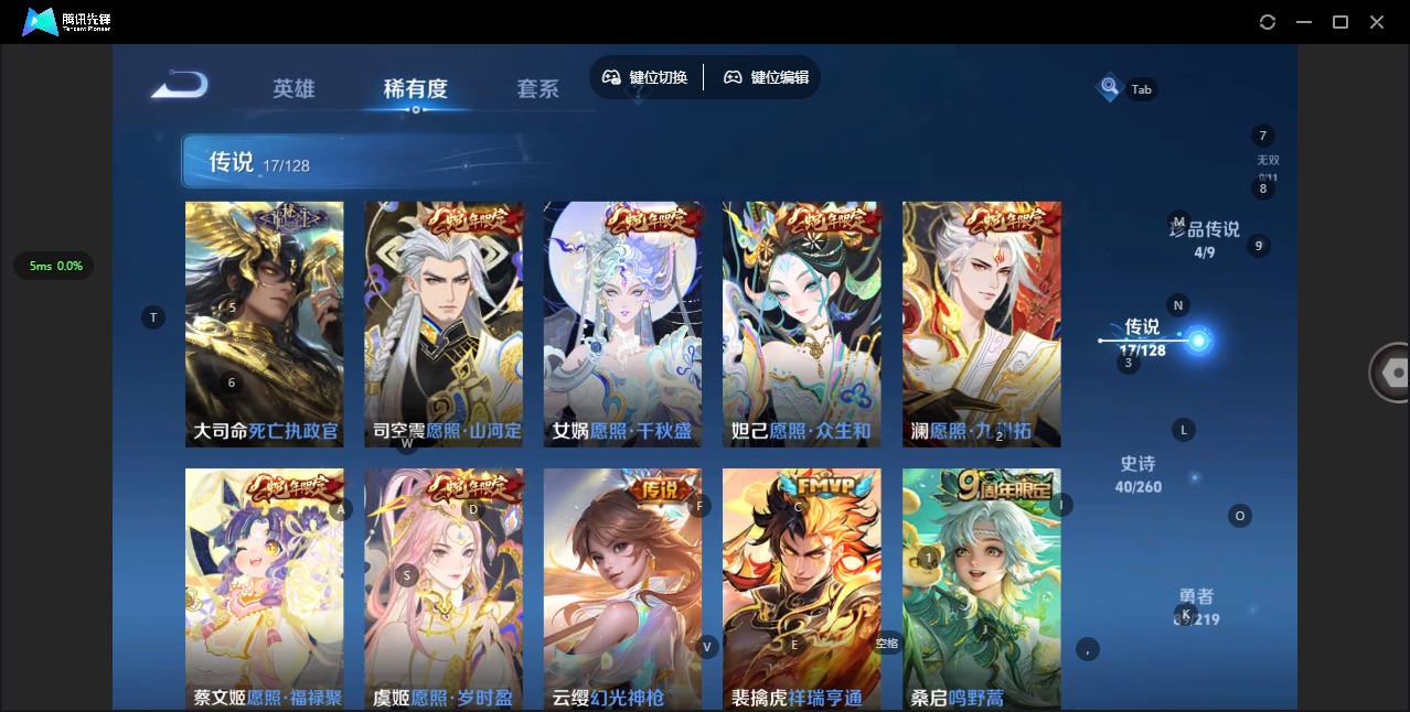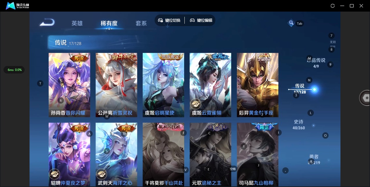 - [11684528]V8 1典藏 12传说 124英雄 219皮肤 可修改实名 优质装备:鸣剑·曳影,黄金狮子座,冠军飞将,末日机甲-孙尚香(绿蚂蚱),地狱火,零号·赤焰,地狱之眼,超时空战士-狄仁杰 珍宝阁皮:万物之道,优雅恋人 限定皮:至尊宝,凤求凰(白切鸡),梅西,武陵仙君(小桃花),时雨天司(水龙头),冰锋战神,游园惊梦,梁祝,天狼绘梦者,李小龙,逐梦之影,永曜之星,辉光之辰,大圣娶亲,引擎之心,冰霜恋舞曲 史诗皮:紫霞仙子,电玩小子(小书包),白龙吟,黄金分割率,特工魅影,千年之狐,真我赫兹(百里守约),冰冠公主,末日机甲-吕布,乱世虎臣,节奏热浪,修罗,摇滚巨星,水果甜心,天才门将,星夜王子,心灵骇客,功夫厨神,德古拉伯爵,暗隐猎兽者,幽灵船长,鬼剑武藏,心灵战警,舞动绿茵,地狱岩魂,纤云弄巧,缤纷独角兽,逐浪之夏,水晶猎龙者,曙光守护者,金属风暴,圣诞狂欢,圣诞恋歌,鹰眼统帅,暗夜贵公子,魅力维加斯,未来纪元-赵云