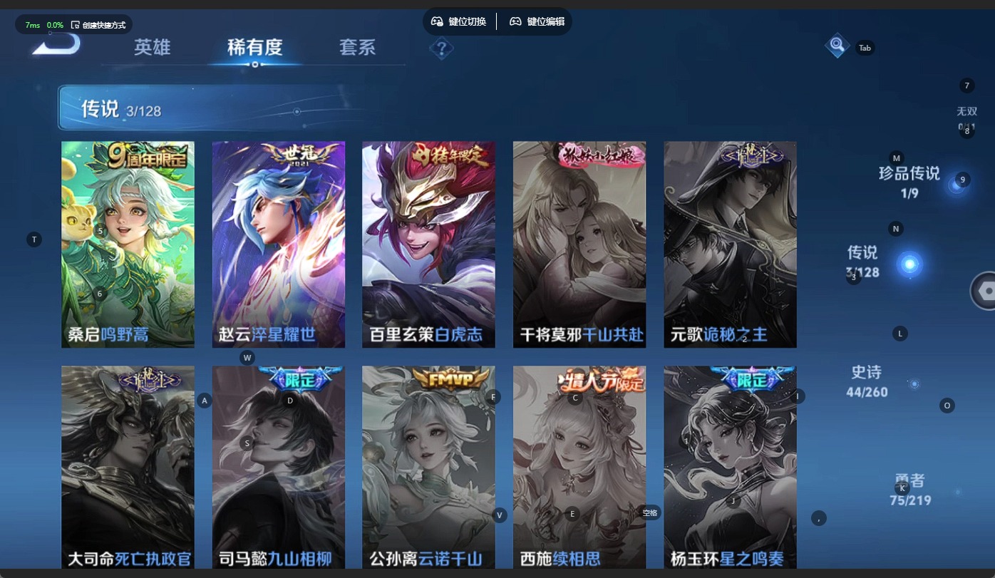 - [11658500]V6 1珍品传说 5传说 124英雄 207皮肤 可修改实名 珍品传说:时之奇旅-孙策 传说皮:幻光神枪,地狱之眼,云鹰飞将(小将军),炽阳神光 珍宝阁皮:妄想食味,蔷薇恋人 限定皮:鸣野蒿,飞衡(韩信年限),遇见飞天,高山流水,五谷丰年,游园惊梦,梁祝,李小龙,猪悟能,大圣娶亲,引擎之心,冰霜恋舞曲 史诗皮:化蝶舞,破空之剑,苍穹之光,电玩小子(小书包),黄金分割率,特工魅影,千年之狐,江河有灵,青蛇,龙骑士(小龙虾),乱世虎臣,修罗,女仆咖啡,水果甜心,天才门将,星夜王子,心灵骇客,功夫厨神,暗隐猎兽者,幽灵船长,鬼剑武藏,心灵战警,舞动绿茵,地狱岩魂,缤纷独角兽,乘风破浪,逐浪之夏,水晶猎龙者,曙光守护者,金属风暴,原初追逐者,圣诞恋歌,鹰眼统帅,黎明之约,无心