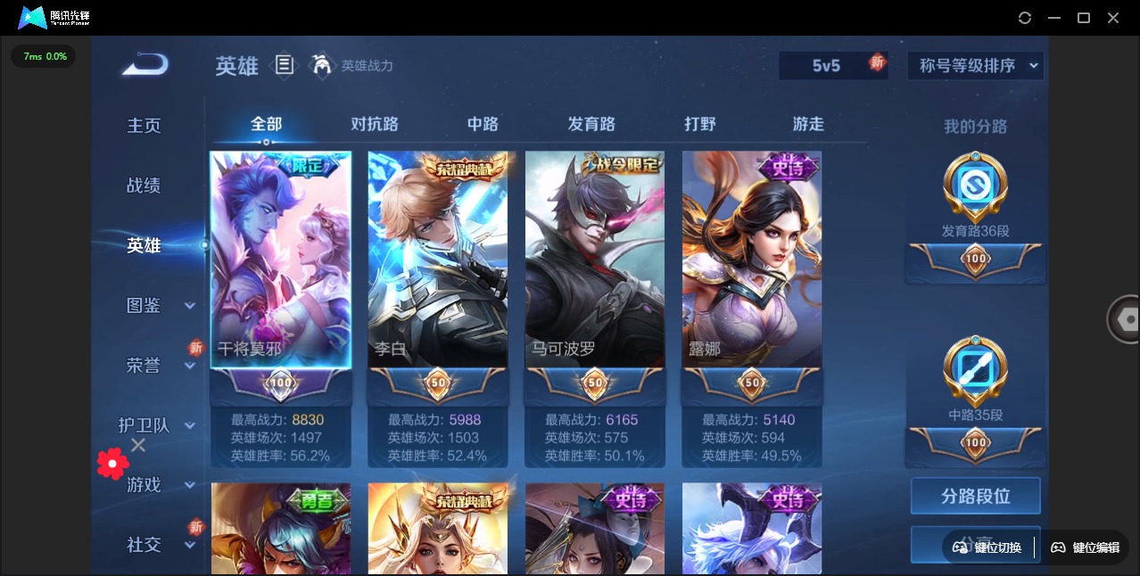 - [11883469]V7 1典藏 8传说 124英雄 282皮肤 可修改实名 优质装备:鸣剑·曳影,末日机甲-孙尚香(绿蚂蚱),地狱之眼,山海·苍雷引(电光曜子),澜逐花归海 传说皮:乘龙·铭钟鼎(赵云年限) 珍宝阁皮:妄想食味,女武神,玩趣恶龙 限定皮:愿照·九州拓(澜年限),逐霄战戟,鸣野蒿,至尊宝,五谷丰年,青龙志(铠年限),游园惊梦,梁祝,天狼狩猎者,李小龙,逐梦之影,默契交锋-花木兰,孙行者,猪悟能,寅虎·赤拳(老虎年限) 史诗皮:星界战将,龙之律动,茶境仙,破空之剑,东方月初,埋骨钱,蔬乡物语(鲁班七号),超元猎域,百相守梦-黄忠,紫霞仙子,电玩小子(小书包),千年之狐,永昼,魅语,高渐离燃音魔法,蒙恬荣光圣徽,冰冠公主,偶像歌手,晚萤,电玩·爆裂旋风,末日机甲-吕布,猫狗日记-孙策,节奏热浪,水果甜心,绅士熊喵,星夜王子,心灵骇客,功夫厨神,德古拉伯爵,暗隐猎兽者,幽灵船长,鬼剑武藏,心灵战警,舞动绿茵,地狱岩魂,纤云弄巧,缤纷独角兽,乘风破浪,逐浪之夏,水晶猎龙者,曙光守护者,箭羽风息,金属风暴,原初追逐者,圣诞狂欢,圣诞恋歌,鹰眼统帅,王者之锤,黎明之约,雪上飞焰,赏金猎手,无心,未来纪元-赵云