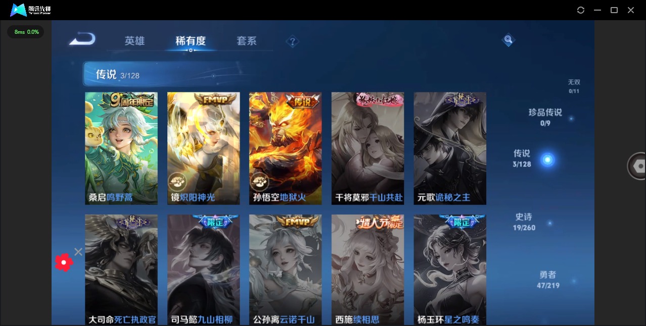 - [11242072]V7 5传说 125英雄 289皮肤 可修改实名 传说皮:乘龙·铭钟鼎(赵云年限),幻光神枪,胖达荣荣 珍宝阁皮:优雅恋人,蔷薇恋人,女武神 限定皮:逐霄战戟,鸣野蒿,遇见飞天,高山流水,齐天大圣,五谷丰年,天狼运算者,梁祝,龙胆,虎魄,李小龙,猪悟能,匿光启智者,梦圆繁星 史诗皮:鸭鸭历险记-刘禅,龙之律动,石田雨龙,蔬乡物语(鲁班七号),琥珀纪元伽罗,紫霞仙子,电玩小子(小书包),特工魅影,千年之狐,电玩·爆裂旋风,江河有灵,百解令(蒙犽),蒙恬荣光圣徽,偶像歌手,末日机甲-吕布,猫狗日记-孙策,乱世虎臣,节奏热浪,修罗,女仆咖啡,水果甜心,绅士熊喵,天才门将,星夜王子,心灵骇客,功夫厨神,德古拉伯爵,暗隐猎兽者,幽灵船长,鬼剑武藏,心灵战警,乐园奇幻夜,舞动绿茵,地狱岩魂,纤云弄巧,繁星吟游(呼啦呼啦),拒霜思,缤纷独角兽,乘风破浪,逐浪之夏,月团寄思,水晶猎龙者,曙光守护者,金属风暴,原初追逐者,圣诞狂欢,鹰眼统帅,魅力维加斯,黎明之约,无心
