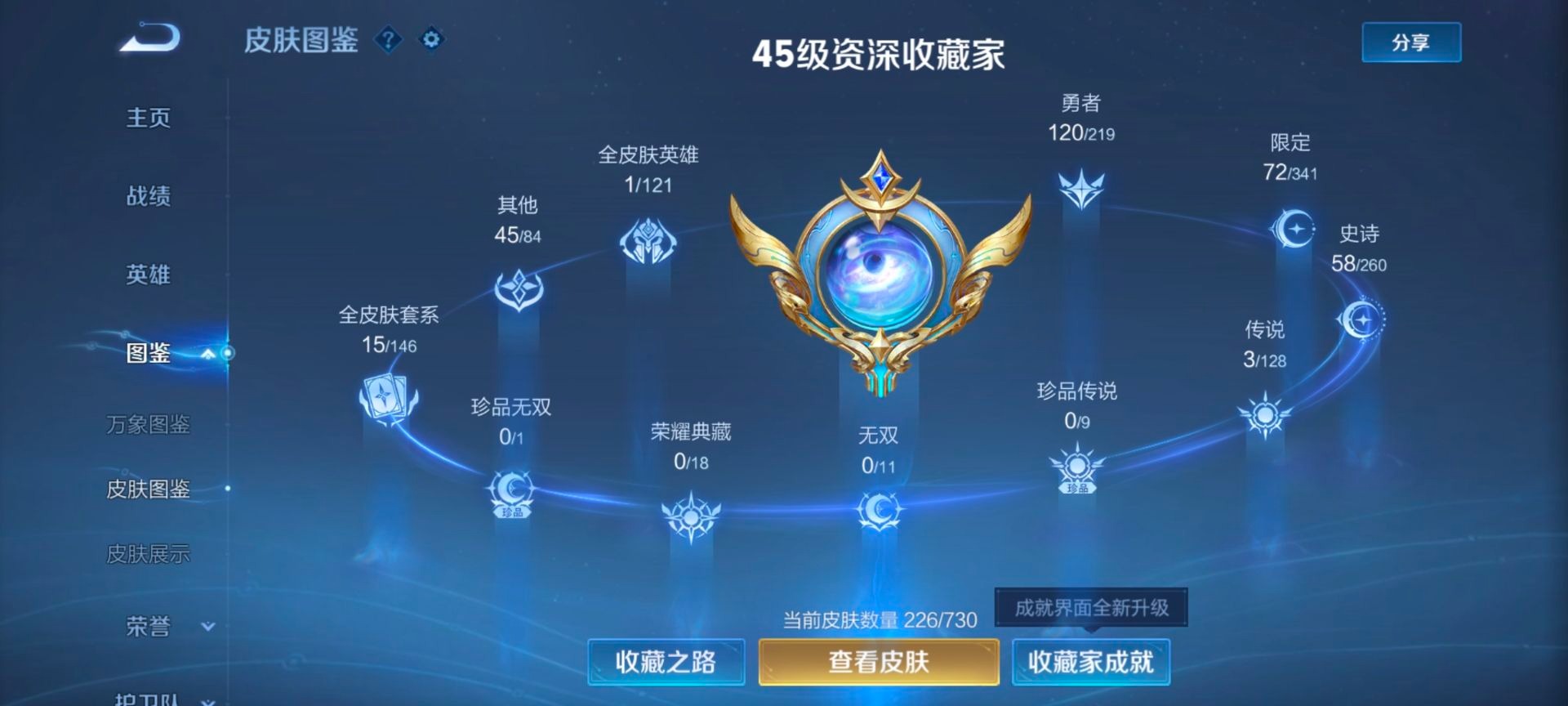 - PX_2104857-安卓VX 285皮 贵族8级 1典藏 2珍品传说 21传说 68史诗【荣耀典藏】赤影疾锋【珍品传说】时之奇旅,兔狲·蓬尾【传说皮肤】祈雪灵祝,云诺千山,战鼓燎原,愿照·山河定,黄金射手座,怒海麟威,愿照·众生和,玄雷天君,乘龙·问璇玑,地狱之眼,黄金白羊座,山海·炽霜斩,逐花归海,超时空战士,启明星使,愿照·岁时盈,时雨天司,乘龙·铭钟鼎,炽阳神光,霜月吟,无双飞将【史诗皮肤
